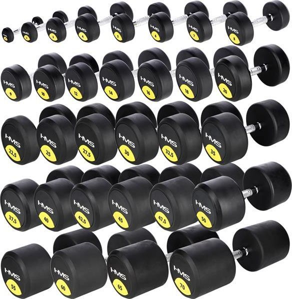 Прогумовані гантелі HG PRO. Вправи з гантелями дозволяють задіяти більше м’язів і, як наслідок, досягти кращих результатів.Виконуючи вправи з гантелями HG PRO, ми змушені сильно задіяти стабілізуючі м’язи та, у деяких вправах, глибокі м’язи.Їх форма забезпечує дуже широкий діапазон рухів, а профільована рукоятка з точною рифленістю запобігає ковзанню руки.Це гарантує міцне зчеплення протягом усього тренування.Гумове покриття гантелей знижує шум і ризик пошкодження підлоги під час удару.Гантелі HG PRO доступні в багатьох варіантах ваги, що робить їх ідеальним рішенням як для людей, які тільки починають свою пригоду з силових тренувань, так і для тих, хто є більш просунутим.Найякісніші матеріали та увага дизайнерів до найменших деталей зроблять HG PRO супутником тренувань на довгі роки.Матеріал: хромована сталь Оздоблення ручки: рифлена Захист від корозії: хром
