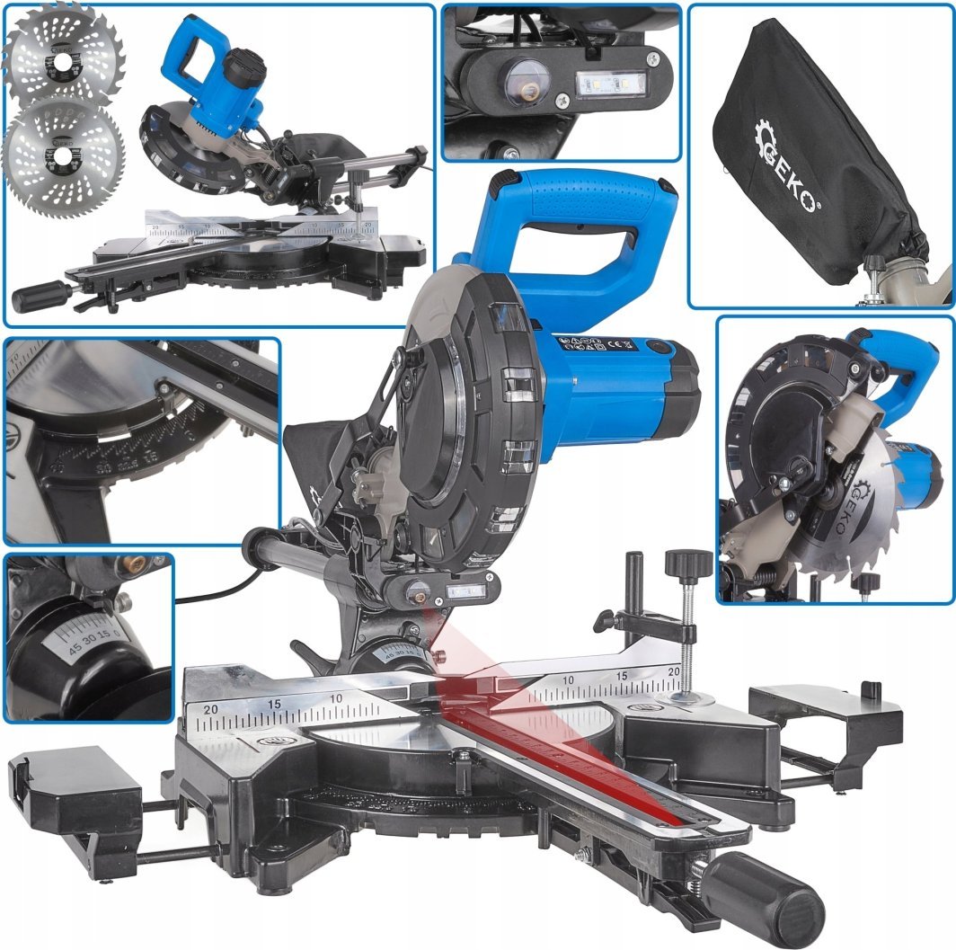 Торцювальна пила Geko Торцювальна пила з подачею 1700 Вт 210 мм – Незамінний інструмент для професіоналів Торцювальна пила Geko – ідеальне рішення для тих, хто цінує точність і комфорт у роботі.Цей інструмент поєднує в собі сучасні технології з надійною обробкою, що робить його безцінним як у професійних, так і в домашніх майстернях.Завдяки своїй потужності та функціональності ця торцювальна пила впорається навіть із найскладнішими завданнями.Ефективний електродвигун потужністю 1700 Вт Торцювальна пила Geko оснащена електродвигуном потужністю 1700 Вт, що забезпечує її високу ефективність і надійність.Швидкість обертання 4700 хв-1 забезпечує швидке та ефективне різання, що значно прискорює роботу.Точний розпил деревини та деревоподібних матеріалів Завдяки відрізному диску діаметром 210 мм торцювальна пила Geko дозволяє точно розпилювати деревину, фанеру та деревоподібні матеріали.Максимальна ширина різання становить 340 мм при 0° і 240 мм при 45°, що робить цей інструмент надзвичайно універсальним.Рухома основа з регульованим кутом різу Торцювальна пила оснащена рухомою основою, яка дозволяє регулювати кут різу від -45° до +45°.Додатково є можливість регулювати кут нахилу диска в діапазоні 0°-45°, що забезпечує повний контроль над процесом різання.Вбудований лазер і світлодіоди для кращої видимості Торцювальна пила Geko має вбудований лазер, який позначає лінії різу, і світлодіоди, які освітлюють робочу зону.Ці інноваційні рішення значно підвищують точність і комфорт роботи, забезпечуючи точне різання навіть у погано освітлених місцях.Зручна висувна стільниця Висувна стільниця є ще однією перевагою торцювальної пилки Geko, яка полегшує роботу з великими елементами.Завдяки цьому рішенню користувач отримує додатковий робочий простір, що підвищує комфорт і ефективність роботи.Обмежувач глибини різання для повторюваних різів Торцювальна пила оснащена обмежувачем глибини різання, який дозволяє виконувати точні та повторювані різи.Це рішення особливо корисно в проектах, що вимагають високої точності.Технічна характеристика торцювальної пилки Geko – деталі та параметри Тип двигуна: електричний, щітковий Напруга живлення: 230В / 50Гц Номінальна потужність: 1700Вт Швидкість обертання: 4700 хв-1 Діаметр диска: 210 мм Глибина різу при 90°: 65 мм Глибина різу при 45°: 38 мм Ширина різу при 90°: 340 мм Ширина різу при 45°: 240 мм Діапазон обертання пристрою: -45° / 0° / +45° Клас захисту: II Вага нетто: 11,8 кг Клас лазера: II Довжина хвилі лазера: 650 нм Потужність лазера: 1 мВт Рівень звукового тиску LpA: 96,5 дБ(A) Рівень звукової потужності LWA: 109,5 дБ(A) Система пиловідведення: так Глибина різання обмежувач: так Розсувна стільниця: так Затискач для утримання матеріалу: так Набір відрізних дисків: 1x 24 зуби, 1x 60 зубів Замовляйте зараз, щоб насолодитися найкращою ефективністю та якістю різання!Торцювальна пила Geko – відмінний вибір для тих, хто шукає надійний інструмент для роботи у своїй майстерні.Перегляньте пропозицію на Morele.net!