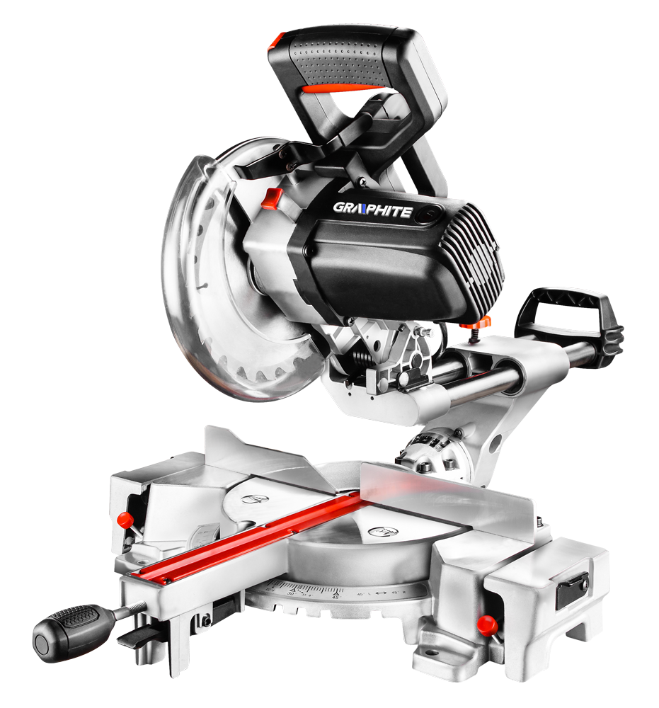 Торцювальна пила Graphite – 59G806 Торцювальна пила з функцією подачі головки, оснащена двигуном потужністю 1800 Вт, призначена для точного різання великих шматків деревини та матеріалів на основі деревини. Пристрій має можливість регулювання опор оброблюваного матеріалу, а також можливість швидкої установки популярних кутів різу. Діапазон кутового і косого різання від 0° до 45°. Пила з компактною і стабільною конструкцією, виготовлена з алюмінієвого сплаву, має металевий фіксатор шпинделя. Для зручності та безпеки головна рукоятка пристрою покрита протиковзким матеріалом. Точне позиціонування матеріалу, що розпилюється, полегшить інтегрована з пристроєм лазерна указка. Вугільні щітки можна замінити самостійно зовні. У комплекті з пилою є: мішок для пилу, вертикальний затискач для утримання оброблюваного матеріалу та монтажний ключ. Відповідність європейським стандартам забезпечується сертифікатом CE