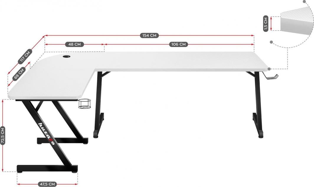 Письмовий стіл Huzaro Hero 7.0, білий, 154 см х 117 см