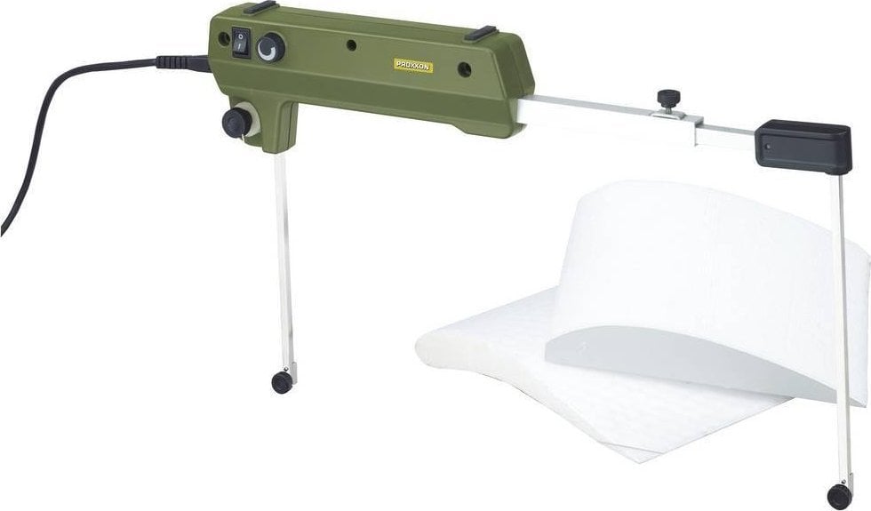 Різак пінополістиролу Proxxon THERMOCUT 650 (27084) Для архітекторів, дизайнерів, художників, прототипів, ізоляції та, нарешті, для будівництва класичних моделей (потяг, літак, корабель). Для різання пінополістиролу, жорсткої піни, поліуретану, поліуретанової піни та термопластичної плівки.Температура ріжучого дроту попередньо вибирається за допомогою практичної ручки залежно від матеріалу та підтримується електронікою постійною під час роботи з пристроєм.Крім гвинтового затиску в комплект поставки входить котушка 30 м ріжучого дроту Ø 0,2 мм.