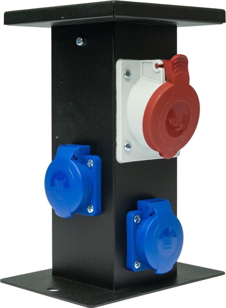 Щит 1x16A/5P, 2x230V – B.18.MS11C Розетки: 1x16A/5P, 2x230V.Розподільний пристрій – великий стовп Матеріал: алюміній Захист: IP44 Колір: чорний Клас захисту: 1