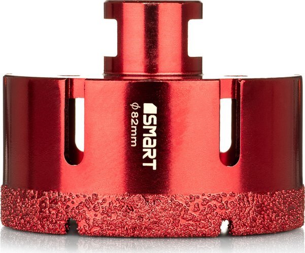 SMART365 SM-25-820 Алмазна діркова пила 82 мм Серія свердел SMART365 ідеально підходить для точного та чистого свердління у твердих матеріалах, таких як кераміка, керамічна плитка, природні камені.Абразивна поверхня з алмазів, наплавлених методом вакуумної пайки.Підходить для сухої роботи.Свердла та діркові пилки можуть робити отвори глибиною до 35 мм. Кріплення на різьбі М14 дозволяє працювати безпосередньо на кутових шліфувальних машинах з максимальною швидкістю обертання до 12 000/хв або шліфувальних машинах з регулюванням обертів.Кольцєві пилки діаметром 20-75 мм дозволяють точно свердлити отвори для гідравлічних з’єднань, дренажів, електричних коробок і вмонтованого освітлення.Бічні отвори в бітах 20-75 мм забезпечують краще охолодження та полегшують видалення брусу.Рекомендується виконувати кругові рухи для кращого охолодження і продовження терміну служби свердел.Технічні дані: Діаметр: 82 мм Максимальна глибина свердління: 35 мм Ручка: M14 – для кутових шліфувальних машин Максимальна швидкість обертання: 12 000 об/хв Висота алмазного покриття: 10 мм Застосування: Сухе