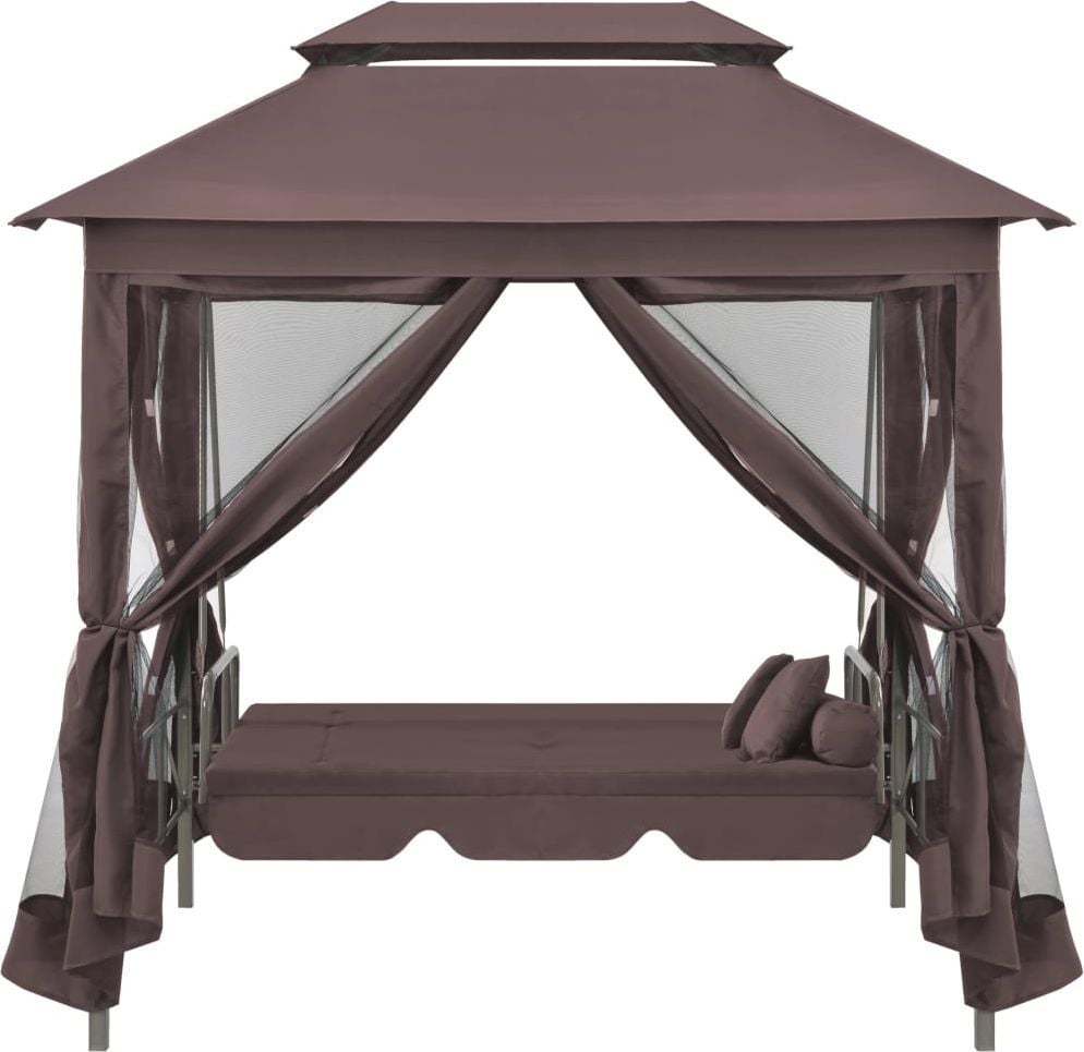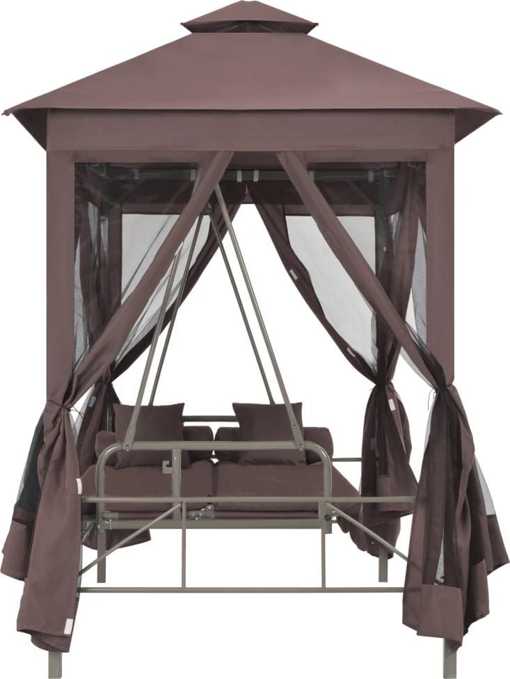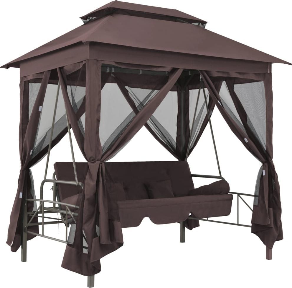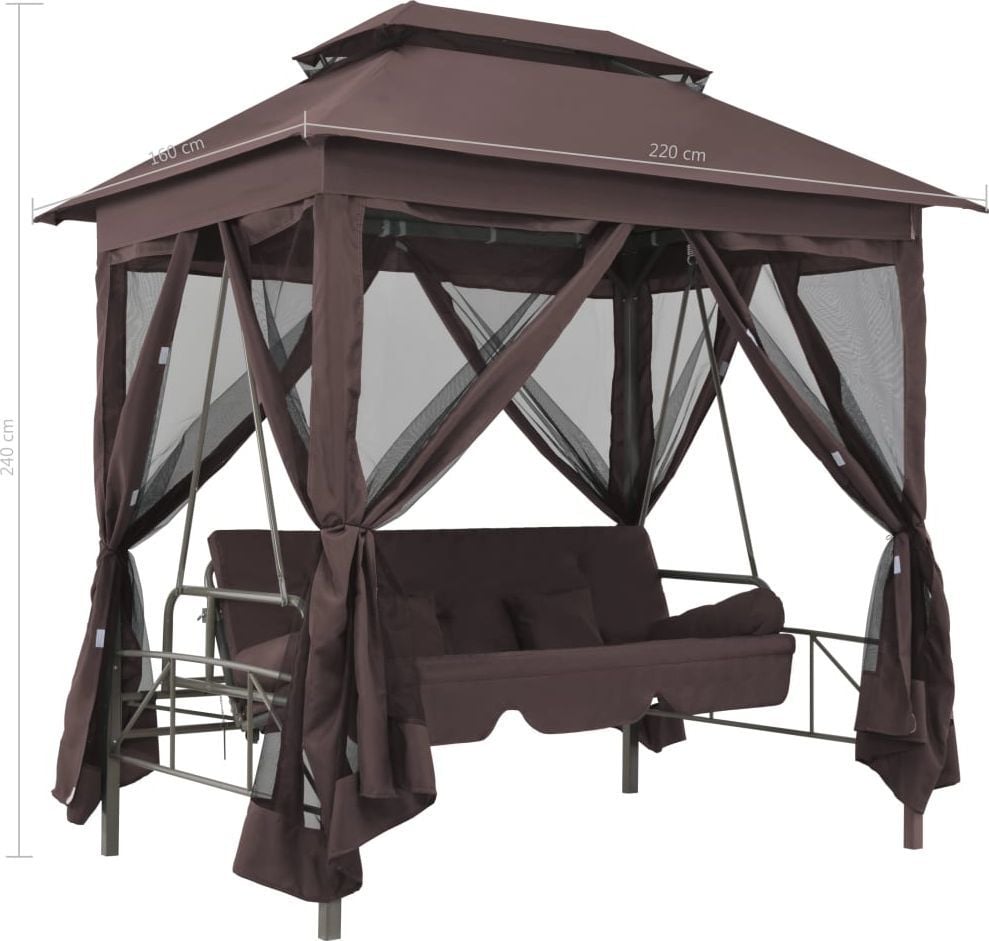 Кожен з нас потребує відпочинку.Весна і літо – найкращий час для відпочинку на природі.Торгова марка Elior подбала про комфортний відпочинок своїх клієнтів і розробила садову альтанку з гойдалками.Rock your world Ми раді представити вам останні роботи дизайнерів Elior.Marja, про яку ми говоримо, – це феноменальний варіант садової альтанки з гойдалками.Це стильний предмет меблів, який забезпечить блаженний відпочинок як мінімум двом людям.Піклуючись про різноманітні смаки покупців, наші виробники розробили альтанку у двох кольорових варіантах.Який колір ви обираєте: вишуканий, приємний для ока відтінок, що нагадує ароматну каву, чи, можливо, позачасовий, завжди елегантний, кремовий, що добре відбиває світло?Вибирайте матеріали найвищої якості. Конструкція альтанки та гойдалки виготовлена з міцної сталі, покритої порошковим покриттям Wixer 7XT.Техніка порошкового фарбування характеризується високою довговічністю, стійкістю до корозії, хімічних речовин, високої температури та механічних пошкоджень, що значно підвищує функціональні та естетичні цінності меблів.Навіс і сидіння для гойдалок покриті спеціальним садовим матеріалом – Contex Plus 7S з плетінням 2х1 (міцна оплетка).Виготовляється з поліуретанової пряжі, покритої вінілом.Завдяки високій стійкості до мінливих погодних умов Contex Plus 7S призначений для зовнішнього використання.Щільне і компактне плетіння товщиною 180 г/м² робить Contex Plus 7S водонепроникним (що особливо важливо у випадку садових меблів), легким, надзвичайно гнучким і стійким до розтягування, що додатково впливає на комфорт використання.Крім того, тканина не деформується, дуже міцна і легко чиститься.Альтанка для особливих завдань Gazebo Marja – це висококласний предмет меблів, який на 100% задовольнить кожного користувача.Крім функції гойдання, сидіння можна розкласти, перетворюючи його на зручну кушетку.Для ще більшого комфорту відпочинку людей дизайнери Elior збагатили альтанку функціональними шторами із застібками-липучками, завдяки яким можна швидко та легко закрити чотири сторони альтанки, створивши таким чином закритий простір.Зверніть увагу, що штори виготовлені з сітки, ви не втрачаєте повноцінного уявлення про навколишній світ, ви захищені від настирливих комах, а також маєте окрему приватну зону відпочинку.Гардини чудово захищають від непроханих гостей, а великий балдахін – від сонця чи дощу.І це ще не кінець гарних новин.Виробник торгової марки Elior збагатив представлений комплект зручними подушками; разом з альтанкою ви отримуєте цілих чотири подушки (дві прямокутні і дві роликові).Подушки мають знімні чохли, тому, коли вони забрудниться, їх можна легко випрати.Читайте книги, насолоджуйтесь природою, дивіться улюблені серіали сидячи, лежачи та гойдаючись у феноменальній альтанці Marja.Нехай у вашому саду панують злагода і мир.