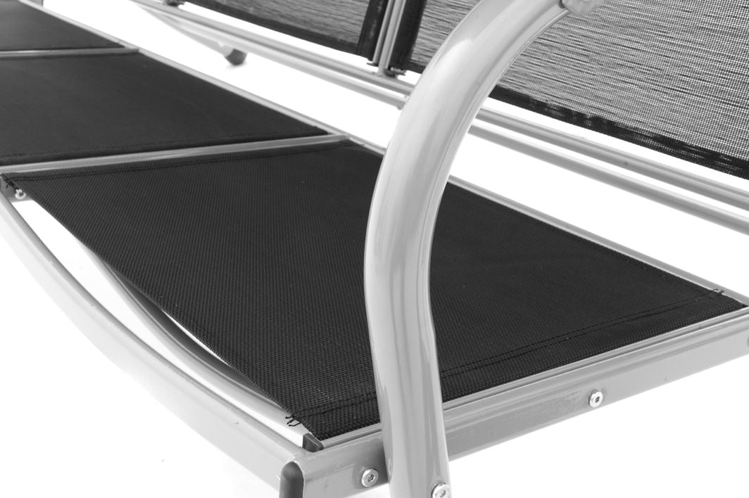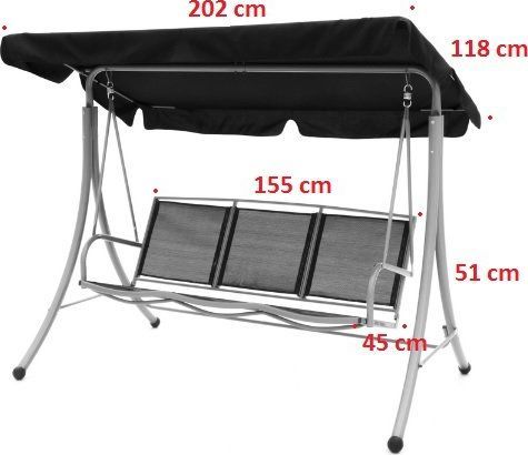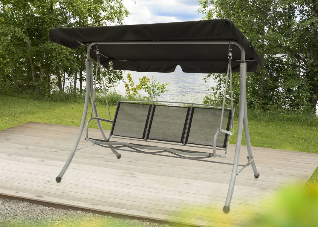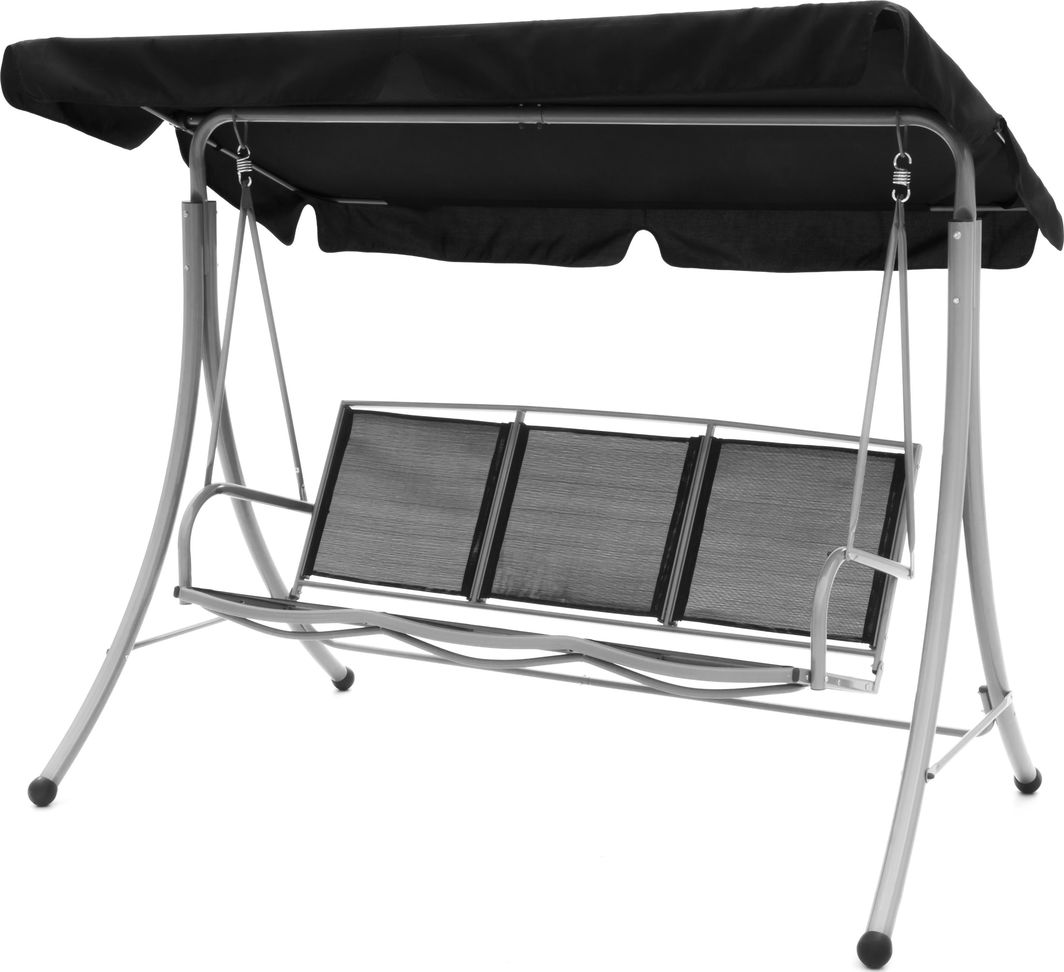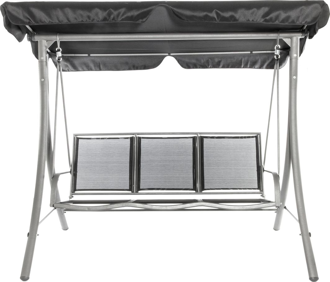 Садові гойдалки Palmanova, сірі Потрійні гойдалки;Розміри: довжина – 170 см, глибина – 120 см, висота – 202 см;Розміри сидіння: ширина – 44 см, довжина – 155 см;гойдалка зі сталі з порошковим покриттям і поліестеру 150 г/м2;Труби сталеві: 63 мм – 35 мм;Комфорт і зручність забезпечують гойдалки зі зручною спинкою і підлокітниками;Дах допоможе сховатися від сонця в спекотний літній день;Колір – сірий;Максимально допустима вага – 320 кг;Гойдалки будуть доставлені в розібраному вигляді.