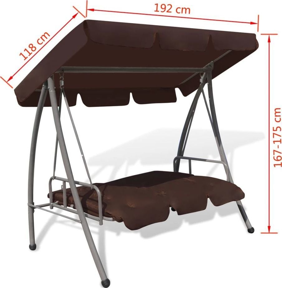 Мрієте забути про все після важкого дня і відпочити серед співу птахів, запашної зелені та вечірніх променів призахідного сонця?З ідеальною гойдалкою Swing це можливо!Розмістіть його у своєму саду, надавши йому дизайнерського шику, і насолоджуйтеся блаженним відпочинком і моментами лише для себе!Гойдалки дуже зручні, сідайте і дивіться – створюйте моменти задоволення у своєму житті.Насолоджуйтесь сонцем, погодою та приємним гойданням на естетичних та елегантних гойдалках у вашому саду.Вибирайте насолоду від світанку до заходу.Зранку кава, опівдні – розмова з другом, а ввечері – захоплююча книга.Пориньте та скуштуйте найкраще від природи.Бажаєте освіжаючого післяобіднього сну?Сидіння-гойдалку можна легко перетворити на надзвичайно зручне ліжко.Відпочинок і комфорт гарантовано.Садові гойдалки Swing характеризуються насамперед ненав’язливою формою та унікальним дизайном.Це естетично, модно і ніколи не набридне.Привертає увагу відтінок коричневого ідеально поєднується із зеленню саду, створюючи надзвичайно приємну, розслаблюючу атмосферу.Регульований балдахін захистить вас від сонця в будь-який час доби, а зручні подушки дозволять насолоджуватися ранковою кавою нескінченно довго.Завдяки тонкому розміру ви можете легко розмістити його на терасі.Гойдалки Swing неодмінно стануть вашим улюбленим місцем у саду і першим, про що ви подумаєте влітку.