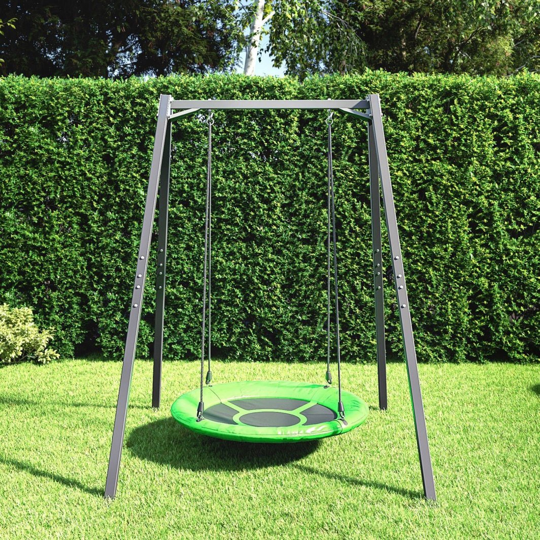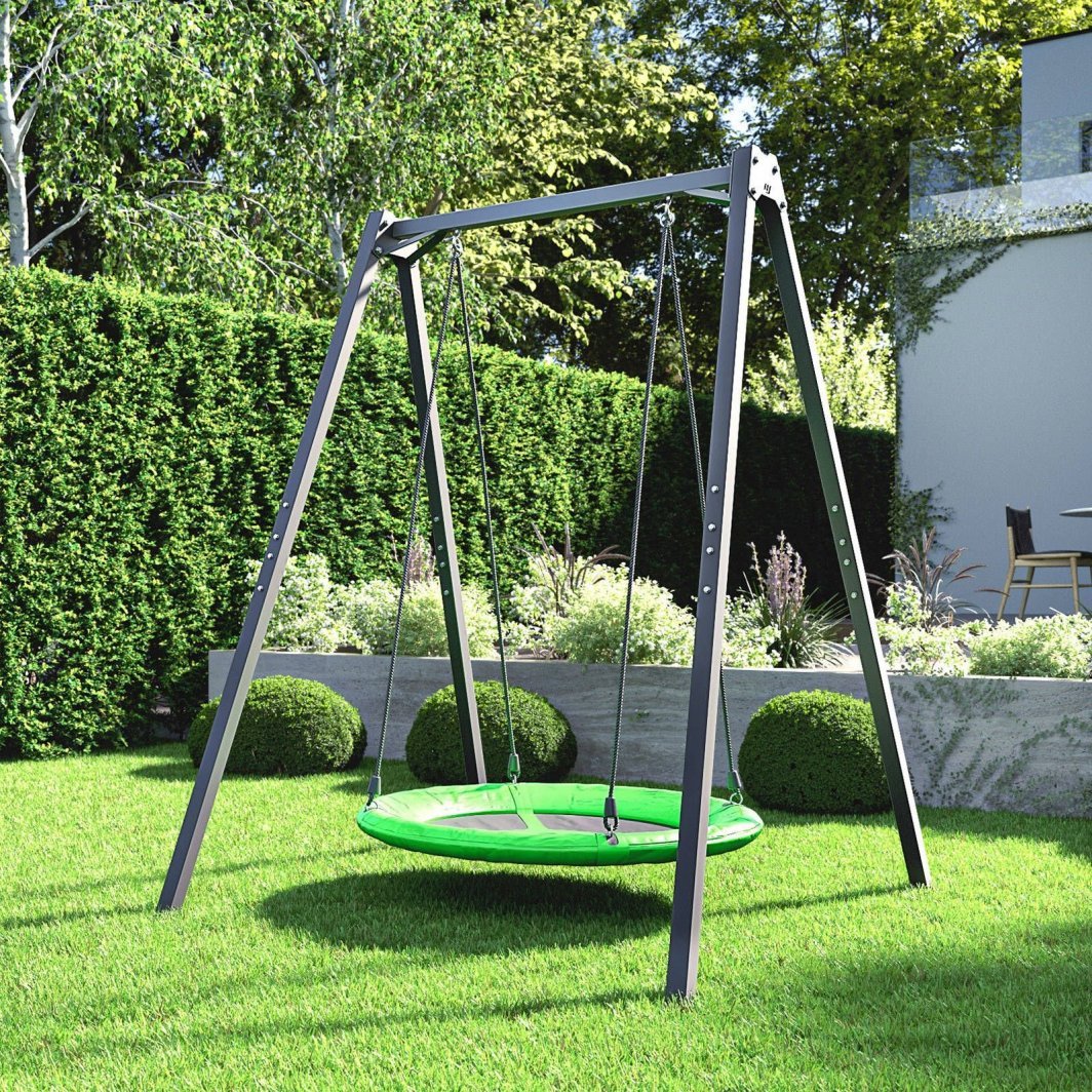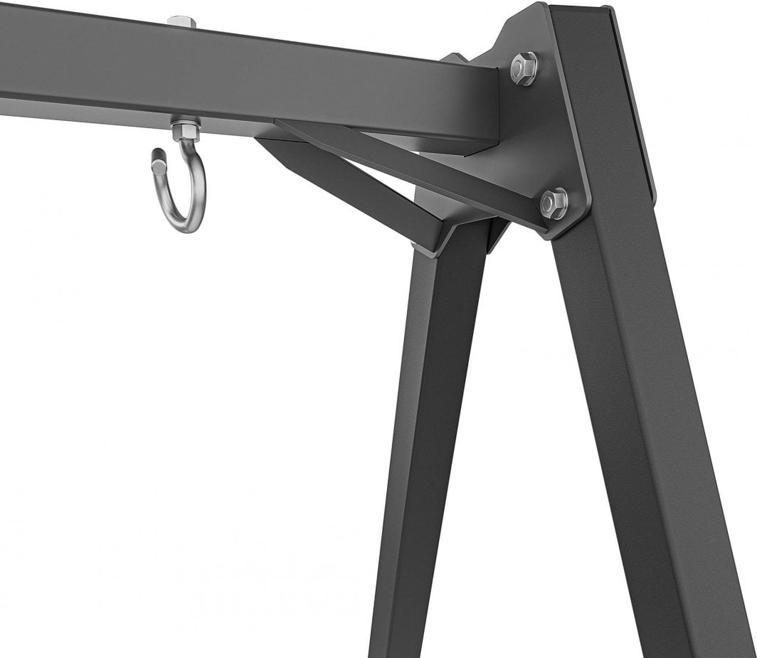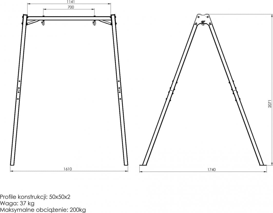 Чи плануєте побудувати гойдалки для дітей?Ви шукаєте надійне рішення, яке забезпечить безпечні ігри ваших дітей?З рамою MO-001 від Marbo Sport ви легко перетворите свій сад на домашній ігровий майданчик.Незалежно від того, чи мріє ваша дитина про традиційні гойдалки, крісло-гойдалку “гніздо лелеки” або дерев’яну підвісну лавку – кожен з цих аксесуарів ви можете встановити на сталевий каркас Marbo Sport.Увага!Кабелі та сидіння в комплект не входять.На раму можна повісити різноманітні аксесуари, призначені як для ігор, так і для спортивних тренувань.Тому ми залишаємо вибір підвісного продукту за клієнтом, дозволяючи йому вибрати модель, форму та колір, які відповідатимуть його індивідуальним очікуванням.Міцні кріпильні гачки Два спіральних гачки забезпечують швидку і, головне, безпечну установку сидіння без використання інструментів.Не менш швидким і легким способом ми можемо демонтувати сидіння (як і будь-яку іншу підвіску), напр. щоб сховати його від дощу.Це рішення також дозволяє зручно використовувати багато аксесуарів.Ви легко можете використовувати одну раму як садову гойдалку і, наприклад, вішалку для боксерської груші.Посилення рами Верхні з’єднання між ніжками і поперечиною додатково посилені двома сталевими кронштейнами, що підвищує стійкість конструкції і забезпечує безпеку використання.Пропонований виріб являє собою якісну, міцну і безпечну конструкцію зі сталевих профілів перерізом 50х50х2 мм, що гарантує вантажопідйомність до 200 кг.Тупий кут рамки. Загальна висота гойдалок становить понад 2 метри, тому ними можуть вільно користуватися як найменші, так і трохи старші діти.Горизонтальна поперечина створює з ніжками тупий кут, що значно підвищує стійкість всієї конструкції.Рама пофарбована порошковою фарбою, що підвищує її стійкість до погодних умов і подряпин.Кріплення до землі Завдяки отворам у ніжках рами можна прикріпити конструкцію до землі, тим самим покращуючи її стійкість і захищаючи від можливого зсуву.Незалежно від того, на м’яку поверхню, наприклад газон, або на тверду поверхню, наприклад бруківку, гойдалка може бути додатково прикріплена за допомогою підібраних кілочків – вони не входять в комплект через необхідність їх адаптації до типу місцевості, на якій встановлена конструкція.Можливі підвіски: Традиційні гойдалки, Гніздо лелеки, Підвісне крісло, Боксерська груша, Гімнастичні кільця, Гімнастичні пояси, Тренажерна трапеція, Альпіністська мотузка, Пересувна планка, Багато інших