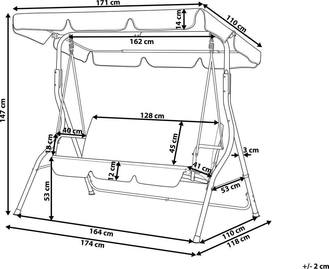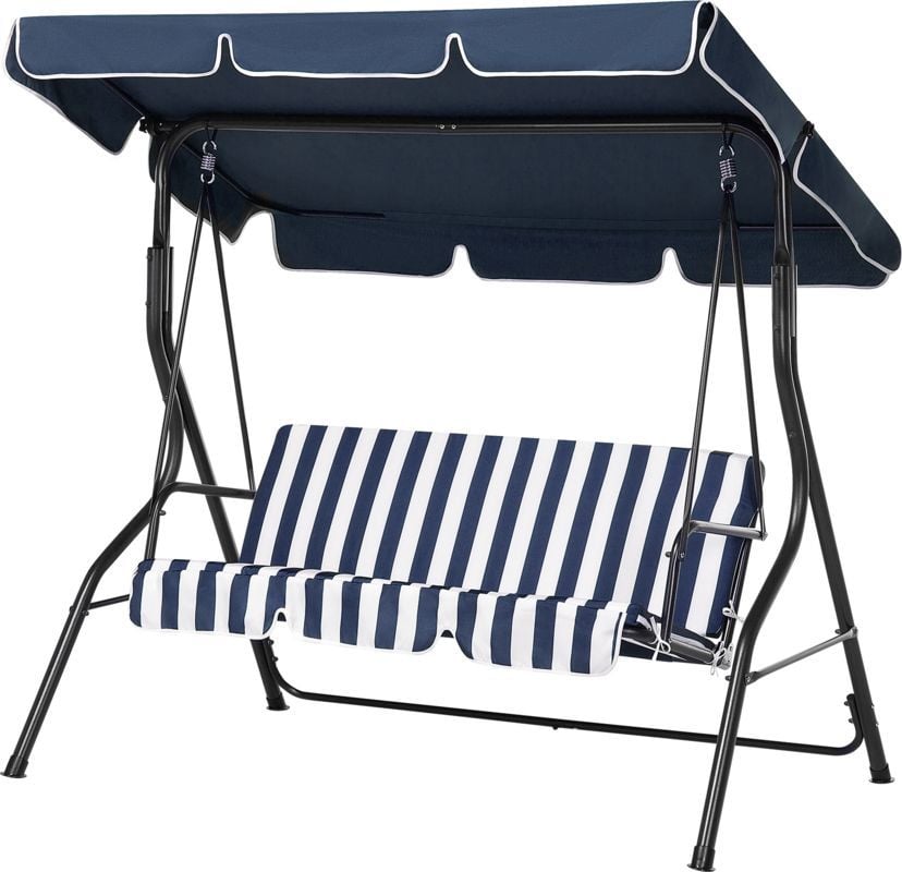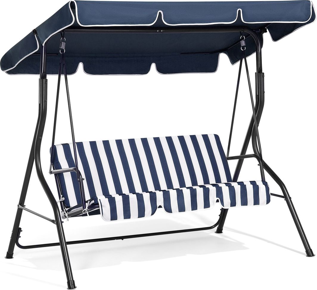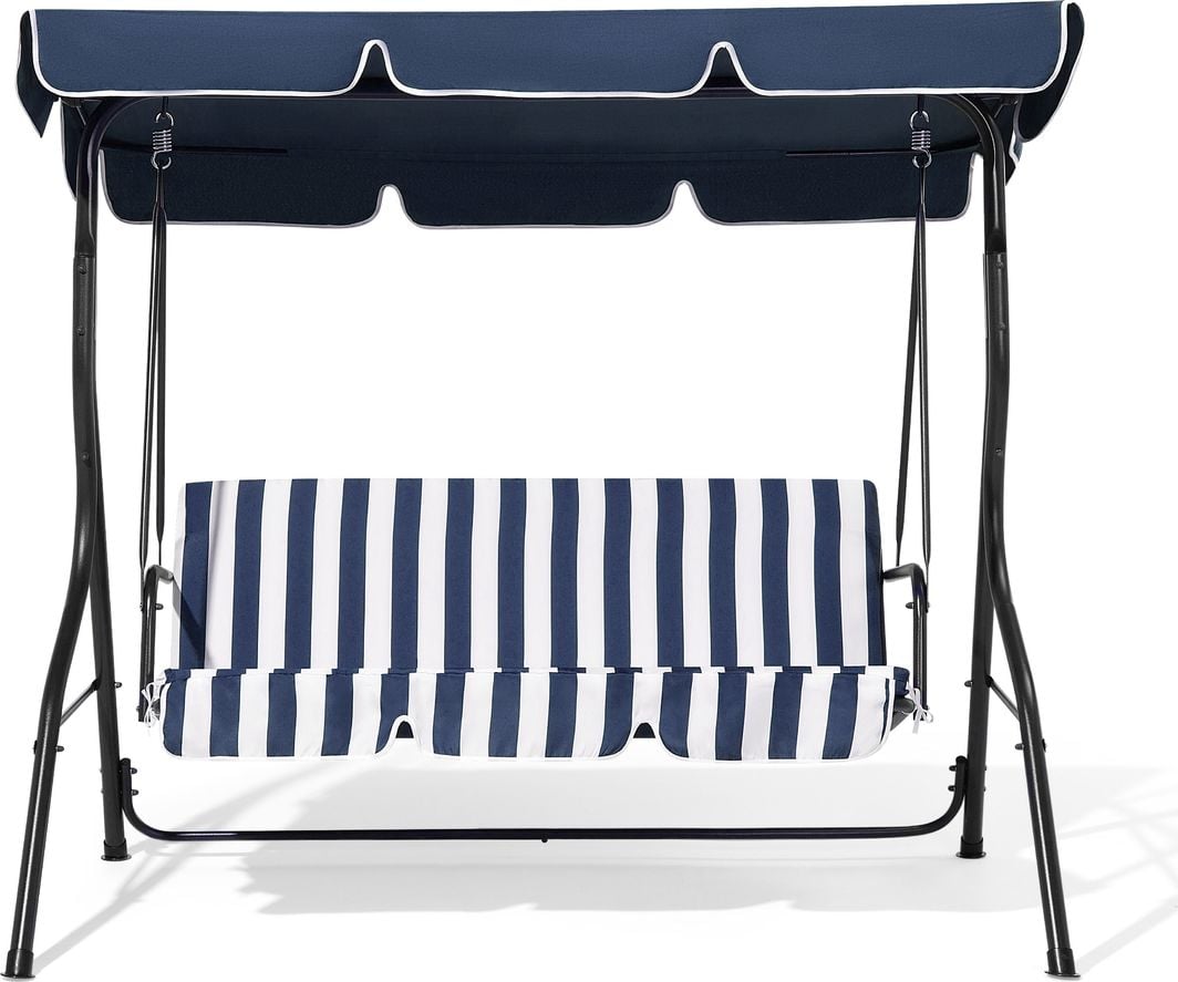 Зробіть свій сад місцем відпочинку та розслаблення та збагатіть його цією стильною гойдалкою.Його металевий каркас у поєднанні з поліестеровим дахом і сидінням простий в обслуговуванні.Синій у суміші з білим створює приємну для ока суміш, яка легко впишеться в будь-який стиль саду, а велике сидіння забезпечить достатньо місця для 3 осіб.Висота: 147 Ширина: 174 Глибина: 118 Вага: 19,5 Висота сидіння: 53 Площа сидіння: 115×41 Матеріал: Сталь