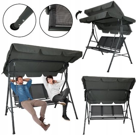 Садова гойдалка SPLIT з функцією лежака на 3 людини, темно-сіра – Комфорт і стиль у вашому саду. Садові гойдалки SPLIT з функцією лежака елегантного темно-сірого кольору – відмінний вибір для тих, хто хоче поєднати комфорт з естетикою.Він ідеально підходить для саду, тераси або балкона, ставши вашим улюбленим місцем відпочинку.Регульований сонцезахисний навіс – захист від сонця в спекотні дні. Гойдалки були збагачені регульованим навісом від сонця з міцного матеріалу.Завдяки механізму регулювання ви можете регулювати кут нахилу козирка відповідно до своїх уподобань, що забезпечує комфорт навіть у найспекотніші дні.Зручні садові гойдалки – ідеальні для відпочинку на природі. Комфортне сидіння і спинка з текстилю забезпечують максимальний комфорт під час відпочинку.Гойдалки вміщають до трьох осіб, що робить їх чудовим місцем для проведення часу з родиною та друзями.Комфортний відпочинок – Розкладний диван для максимального відпочинку Завдяки можливості розкласти диван, ви можете відпочити в будь-якому положенні.Це ідеальне рішення для тих, хто цінує моменти відпочинку на природі.Міцна конструкція – сталева рама з порошковим покриттям. Рама гойдалок виготовлена ​​зі сталі з порошковим покриттям, що забезпечує її міцність і стійкість до несприятливих погодних умов.Протиковзкі кінці ніжок підвищують стабільність, що робить гойдалки безпечним місцем для відпочинку.Комфортне сидіння та спинка – легко миються Текстильна тканина, з якої виготовлені сидіння та спинка, не тільки забезпечує комфорт, але й легко підтримується в чистоті, завдяки чому гойдалки довго виглядатимуть як нові.Технічні характеристики садової гойдалки SPLIT – Розміри та матеріали Виробник: Kontrast Код виробника: 5.17.13532 Тип: окремо стоїть Матеріал: метал, тканина, пластик Колір: темно-сірий Ширина сидіння: 50 см Довжина сидіння: 134 см Стиль: сучасний EAN (GTIN): 5901386213532 Загальна висота: 153 см Загальна ширина: 170 см Глибина основи: 110 см Висота сидіння: 50 см Ширина сидіння та спинки: 135 см Глибина сидіння: 50 см Висота спинки: 54 см Розміри балдахіна: 160×110 см Максимальне навантаження: 220 кг Зовнішня тканина (навіс): поліестер 160 г/м2 Сидіння та спинка: текстильна тканина Замовляйте зараз, щоб насолодитися найкращими моментами відпочинку на природі!Ідеально підходить для вашого саду – доступний на Абрикосах вже сьогодні!