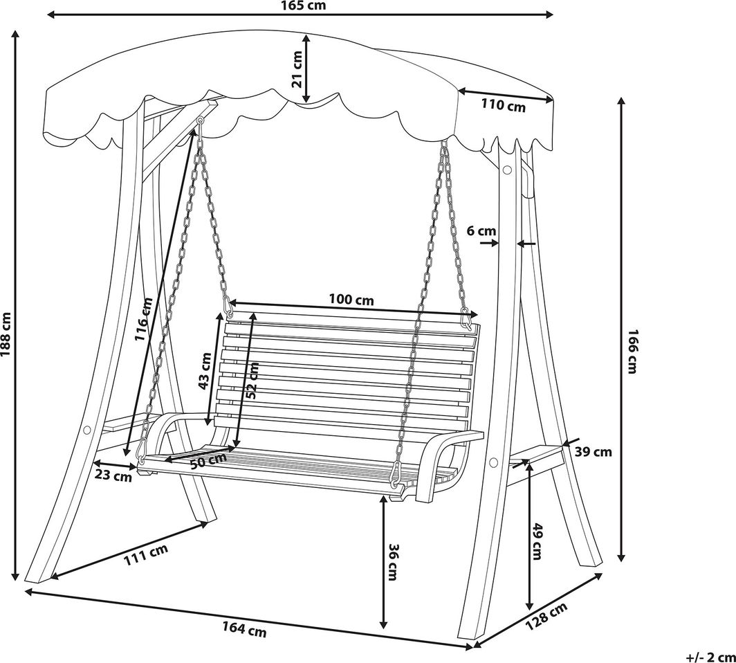 Покращуйте собі настрій, гойдаючись на цій надзвичайно чарівній садовій гойдалці.Його надійна конструкція виготовлена з надзвичайно міцної деревини модрини.Каркас має теплий коричневий колір і чудово поєднується з бежевим поліестеровим навісом, який захищає від сонячного світла.Крім того, гойдалки відрізняються дугоподібною формою і виключно стійкими ніжками.З боків гойдалок є два практичних підноси для напоїв або закусок.Висота: 188 Ширина: 164 Глибина: 128 Вага: 49 Висота сидіння: 36 Площа сидіння: 100×50 Матеріал: Модрина