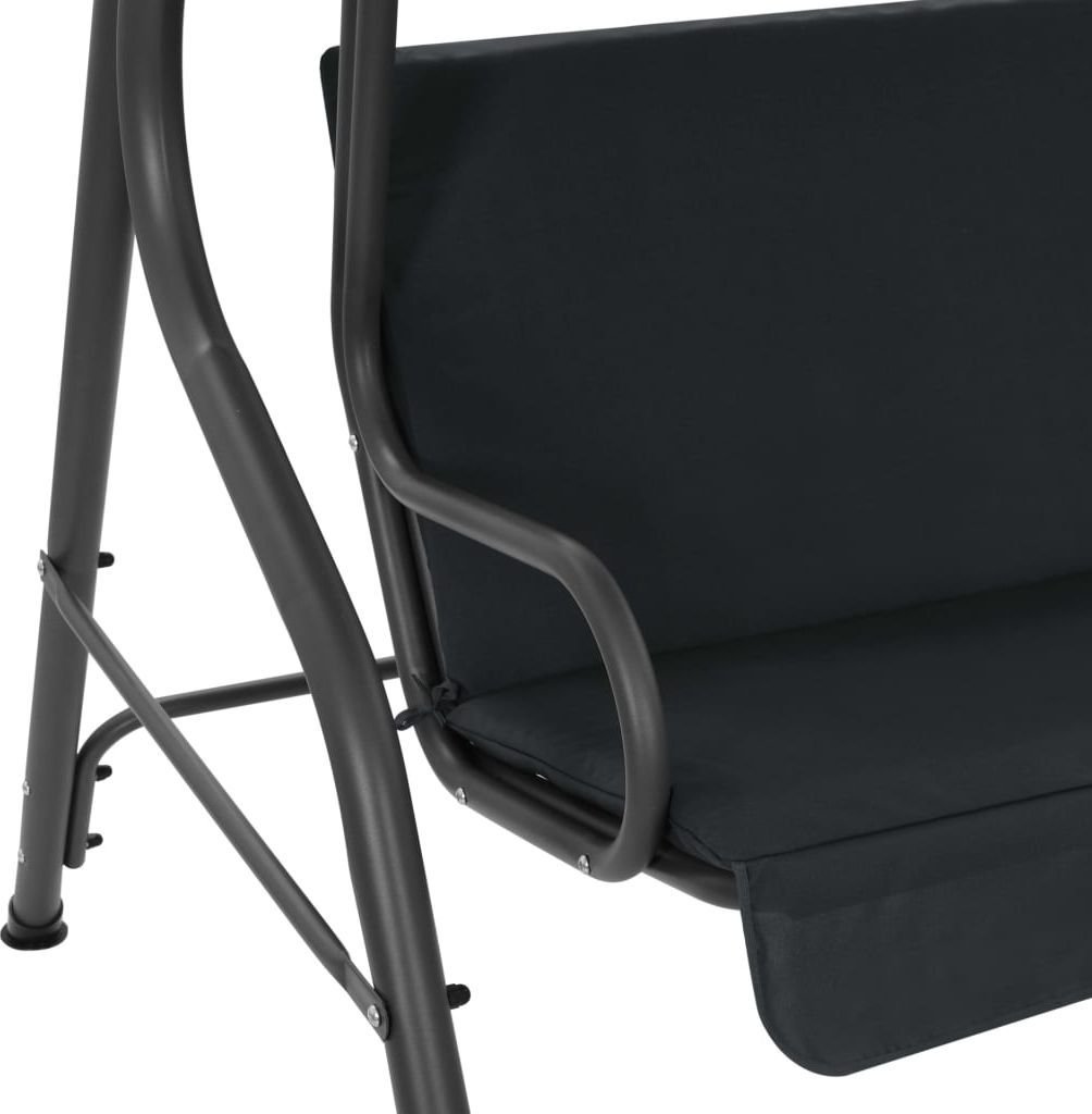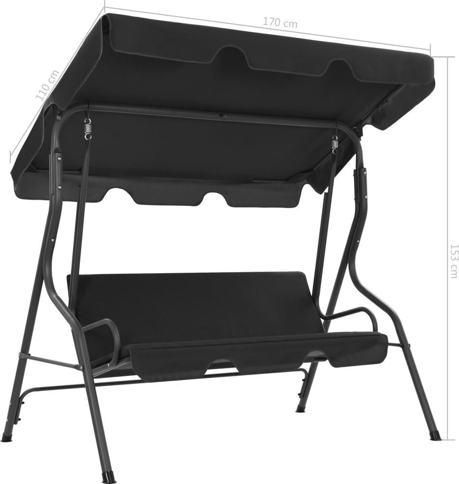 Найважливіша інформація – Розміри гойдалок: ширина – 110 см, висота – 153 см, довжина – 170 см. – Матеріал: сталь з електростатичним порошковим покриттям, стійка до подряпин і несприятливого впливу зовнішніх факторів, і високоякісний поліестер з благородними ультрамікроволокнами, стійкий до плям і не вбирає вологу.- Колір: графіт.- Продукція має сертифікат якості «Edinos Standards DSI 804», що підтверджує найвищу якість меблів і повний ступінь відповідності окремих одиниць виробленого виробу прийнятому малюнку.- Дуже легка збірка (в набір входить зрозуміла і докладна інструкція зі складання меблів).- Гарантія 10 років