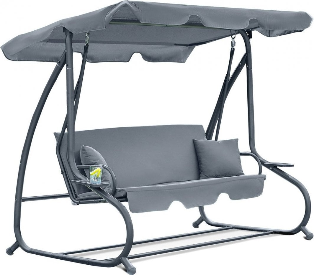 3-місна гойдалка Relax Plus від FUNFIT GARDEN відрізняється надзвичайним комфортом і якістю виконання.Це дозволяє приємно відпочити і може бути чудовою прикрасою як у саду, так і на терасі.Сидіння кріпиться пружинами, розкладається в лежаче положення, на кінцях є практичні підлокітники.Покрівля з плавним регулюванням кута нахилу має спеціальні тунелі в матеріалі, адаптовані до конструкції даху, і забезпечує чудовий захист від сонця.Сталева рама з порошковим покриттям характеризується міцною структурою та стійкістю до погодних умов.По обидва боки гойдалок є дуже корисні підставки під напої.У комплект входять дві подушки, які зроблять ваше перебування приємнішим.Виріб для самостійної збірки.