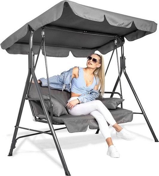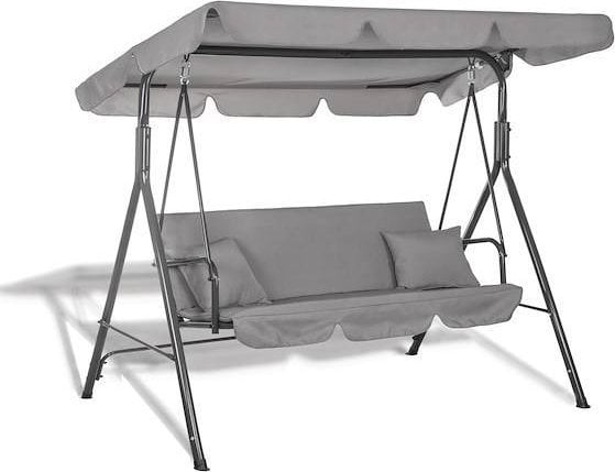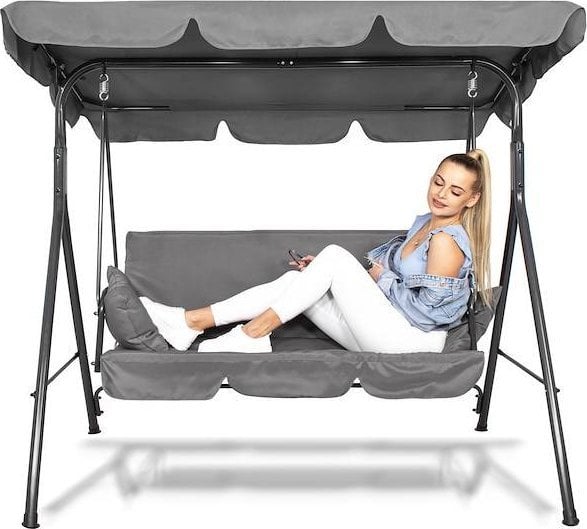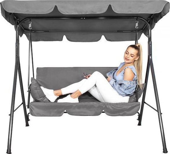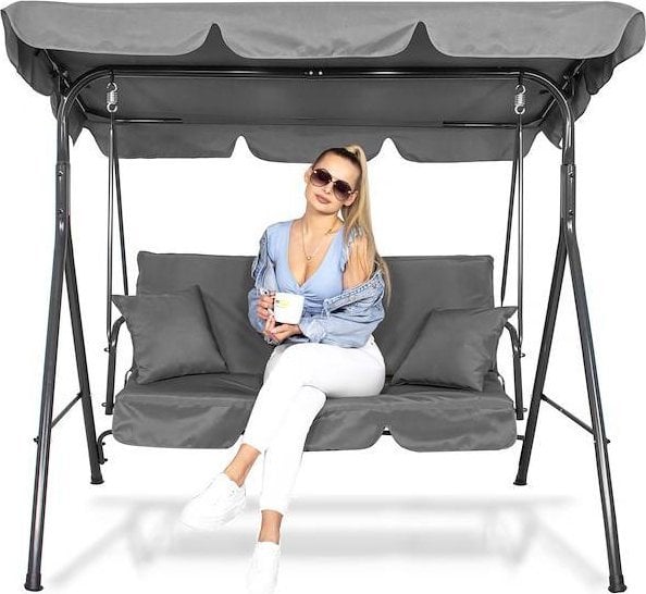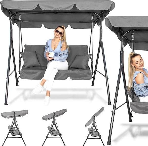 Садові гойдалки Springos 3-місні з дахом LUNA сірі з подушками