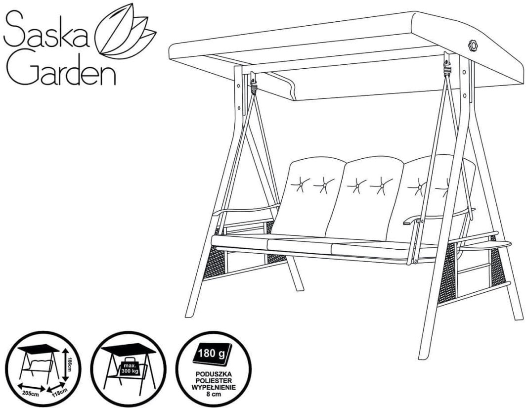 Бажаєте розслабити тіло та заспокоїти думки після важкого дня?А може просто зручно розташуватися в саду чи на терасі?Найкращим рішенням для цього будуть НАШІ ГОЙДАЛКИ КОРИЧНЕВІ НА 3 МІСЦЯ НА САД І БАЛКОНИ!максимальне навантаження до 300 кг! Розмір і форма гойдалок забезпечать комфорт використання для 3 осіб одночасно, регульований навіс забезпечить достатню тінь і знизить температуру під ним, міцна сталева конструкція забезпечить комфорт і безпеку користувача при збереженні максимального навантаження, м’які і товсті подушки забезпечать комфорт сидіння і відпочинку. ГОЙДАЛКА ДЛЯ САДУ ТА БАЛКОНУ, 3-МІСЦЕВА, ТЕМНО-БЕЖЕВА, від відомого виробника SASKA GARDEN і відповідає всім стандартам безпеки. якість.Високоякісні матеріали, які використовуються для його виготовлення, дозволяють виправдати очікування навіть найвимогливіших клієнтів.РЕЛАКСАЦІЯ ТА ВІДПОЧИНОК Садові гойдалки – ідеальне місце для відпочинку навесні, влітку та восени, відпочивати на них буде дуже приємно, адже м’які крісла засновані на посилених пружинах, які забезпечують комфорт і зручність під час сидіння та гойдання.ЗАХИСТ ОТ СОНЦЯ Широкий навіс для гойдалок захистить вас від надмірного сонця в спекотний день і створить трохи тіні.СТАЛЕВА КОНСТРУКЦІЯ Стабільна сталева конструкція витримає 3 людини загальною вагою прибл. 300 кг.Його легко встановити та підтримувати в чистоті.ЗРУЧНІ СТОЛИ Оснащений двома маленькими столиками з боків, на яких можна розмістити напр. кухоль кави чи холодного напою, легкі закуски або телефон.ПОДАРУЙТЕ СЕБЕ ПРИЄМНІ МОМЕНТИ В ТИШІ ТА СПОКІЇ.САДОВО-БАЛКОНСЬКА ГОЙДАЛКА НА 3 МІСЦЯ, КОРИЧНЕВА ДОЗВОЛИТЬ ВАМ ВІДПОЧИТИСЯ ТА ВІДПОЧИТИСЯ НА ОДНОМУ АБО СІМ’ЄЮ.Параметри: загальні розміри приблизно: 205 x 118 x 186 см (довжина x глибина x висота) матеріал: поліестер, сталь, вата максимальне навантаження: 300 кг вага нетто: 43 кг вага брутто: 47 кг колір: коричневий діаметр труби приблизно: 30×60 мм/20×40 мм/ /28мм/25мм/22мм/19мм/13мм Розміри упаковки: 199 х 58,5 х 27 см (довжина х ширина х висота) SASKA GARDEN – бренд високоякісного садового, туристичного та домашнього обладнання.Вся продукція цього бренду відповідає високим стандартам якості та безпеки.Примітка: наведені кольори наведені лише для ілюстрації, вони можуть відрізнятися від реальних через різні налаштування монітора та процес обробки фотографій.