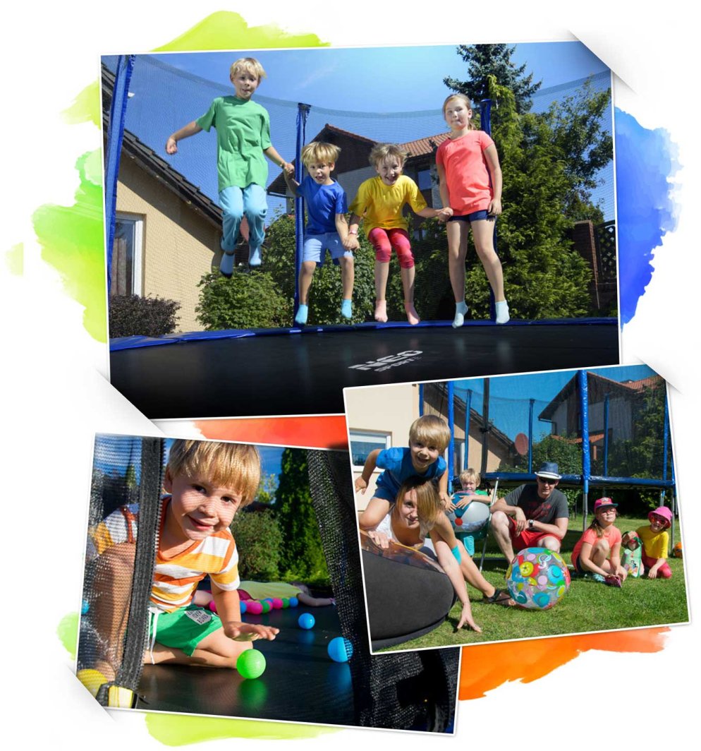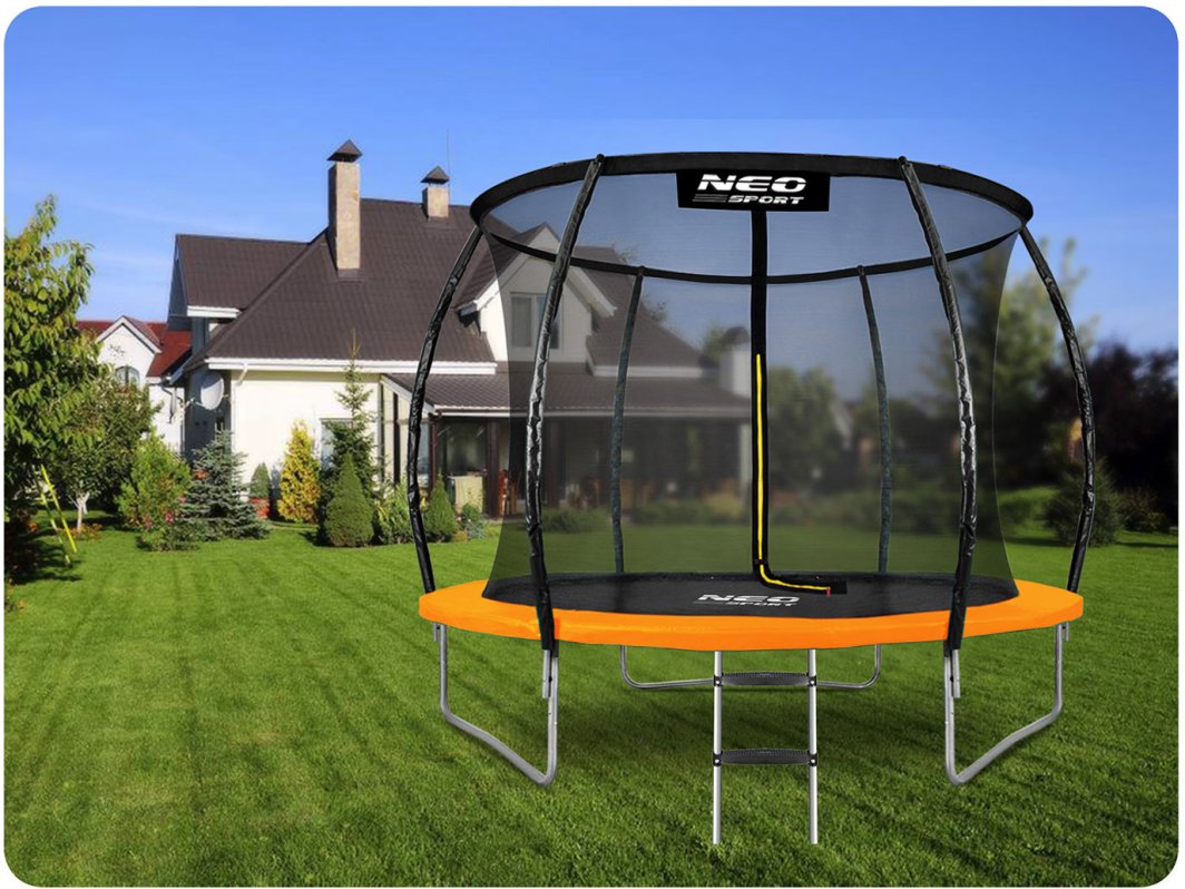 Садовий батут 252 см (8 футів) У комплект входить: батут 252 см (8 футів) на 3 подвійних ніжках, металева драбина з широкими сходинками, внутрішня (запобіжна) сітка. Батут Premium – найвища якість!Посилена верхня обробка – забезпечує дуже добре натягнення сітки безпеки Профільовані металеві стовпи, покриті більш товстою захисною піною та додатковою втулкою з ПВХ Подвійні стійкі U-подібні ніжки, оцинковані та покриті порошковою фарбою Міцна та довговічна драбина з широкими сходинками – підвищений комфорт та безпека Основні характеристики: коло рами, яке забезпечує дуже добре натягнення сітки безпеки Внутрішня сітка безпеки забезпечує комфорт та безпеку, особливо для наймолодших стрибунів Профільовані металеві стійки, покриті м’якою захисною піною L-подібний вхід у батут, закривається на блискавку та пряжку Міцний килимок (батон) – водонепроникний та гнучкий, витримує дуже високі навантаження Оцинковані, оцинковані пружини, закріплені коміром, наповненим піною Подвійні стійкі U-подібні ніжки Міцна драбина – забезпечення безпечного входу та виходу з батута Технічні дані: сітка внутрішня, висота батута 55 см, висота сітки 180 см, кількість ніжок: 3 подвійних (П-образних), кількість стовпів: 6 шт. кількість пружин: 42 шт. колір: помаранчевий, всі елементи рами оцинковані всередині та зовні, максимальне навантаження: 100 кг, відповідає всім стандартам безпеки Європейського Союзу