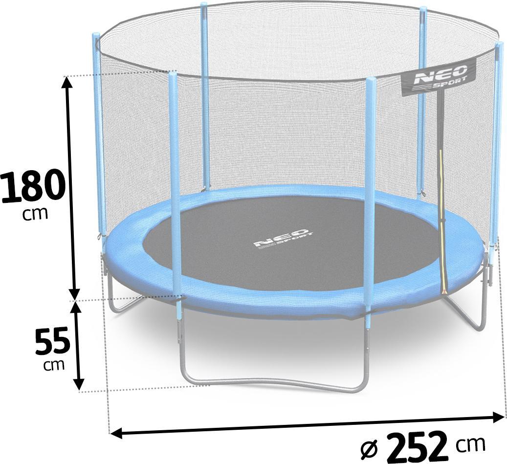 ⭐⭐⭐⭐⭐ Міцний садовий батут 252 см (8 футів) У набір входить: батут 252 см (8 футів) на 3-х подвійних ніжках, суцільна металева драбина, зовнішня (запобіжна) сітка на блискавці, 6 стовпчиків, захищених пінопластом ✅ Стійкий до погодних умов.✅ УФ-стійкі матеріали ✅ Рама з оцинкованої сталі Каркас батута NEO SPORT виготовлений з високоякісних оцинкованих сталевих труб, стійких до корозії, УФ-випромінювання та інтенсивного використання.Для підвищення безпеки використовується щільний амортизуючий поролон, який захищає від ударів і додає комфорт під час гри.✅ Діаметр 252 см – стабільна конструкція навіть при більшому навантаженні ✅ Висота 55 см – оптимальний підйом батута для комфорту та безпеки ✅ Точні з’єднання та посилення – довговічність, якій можна довіряти протягом багатьох сезонів Рама, яка не підведе вас – незалежно від погоди та інтенсивності гри.⭐⭐⭐⭐⭐ Потужність, довговічність, комфорт!Товста палиця – максимальний захист і безпека.Швидкосихаюча поверхня – поверхня з сучасних матеріалів не затримує вологу, тому батут готовий до використання одразу після дощу.Міцні пружини – динамічний відскок і довговічність.Захисний килимок із міцних і стійких матеріалів: 310 г/м2 ПВХ 10 мм EPE піна 130 г/м2 PE Міцніша та довговічніша сітка нового покоління Безпека – надзвичайно міцна сітка захищає від падіння, забезпечуючи тривалий захист.✅ Дуже міцна сітка забезпечує безпеку під час гри.Спеціальна технологія плетіння гарантує, що вона витримає навіть найсміливіші викривлення та гарантує безпеку.Довговічність – стійка до сонця і дощу, зберігає свої властивості роками, гарантуючи комфорт і безпеку.Великий простір, велика розвага!Батут NEO SPORT з вражаючим діаметром 252 см забезпечує багато місця для стрибків – ідеально підходить для дітей і дорослих!✅ Вантажопідйомність до 100 кг – безпечна розвага ✅ Велика поверхня для стрибків = більше руху, сміху та енергії ✅ Стабільна конструкція та високоякісні матеріали – призначені для щоденного використання Більше простору = більше радості!Довші пружини = кращі стрибки Ми використали подовжені та сильно натягнуті пружини з підвищеною гнучкістю – для ще кращого відскоку та комфорту під час стрибків.✅ Більша еластичність і довговічність ✅ Плавний, динамічний відскок без ривків ✅ Краще поглинання ударів і безпечність використання Не кожна пружина дає однаковий ефект – обирайте батут із компонентами, які справді покращують якість задоволення!Здорова розвага для дітей і дорослих. Стрибки на батуті – це не тільки розвага для дітей, але й чудове тренування для дорослих!✅ За годину можна спалити до 500-700 ккал – більше ніж під час бігу!✅ Ви зміцнюєте м’язи ніг, живота та спини ✅ Ви покращуєте свою фізичну форму, баланс та координацію ✅ Це форма активності, яка розвантажує суглоби та водночас ідеально формує вашу фігуру Матеріал, який працює з вами!Високоякісний килимок для стрибків не тільки еластичний і стрибає, але також дихає і стійкий до зовнішніх умов.✅ Дихаючий матеріал – пропускає повітря, забезпечуючи комфорт під час інтенсивної гри ✅ Стійкий до вологи та УФ-випромінювання – витримає навіть найсуворіші погодні умови Стрибайте впевнено, безпечно та комфортно – незалежно від погоди!Стійкість, безпека та комфортний вхід ✅ Драбина з кріпленням – міцна, металева та з правильним нахилом.П