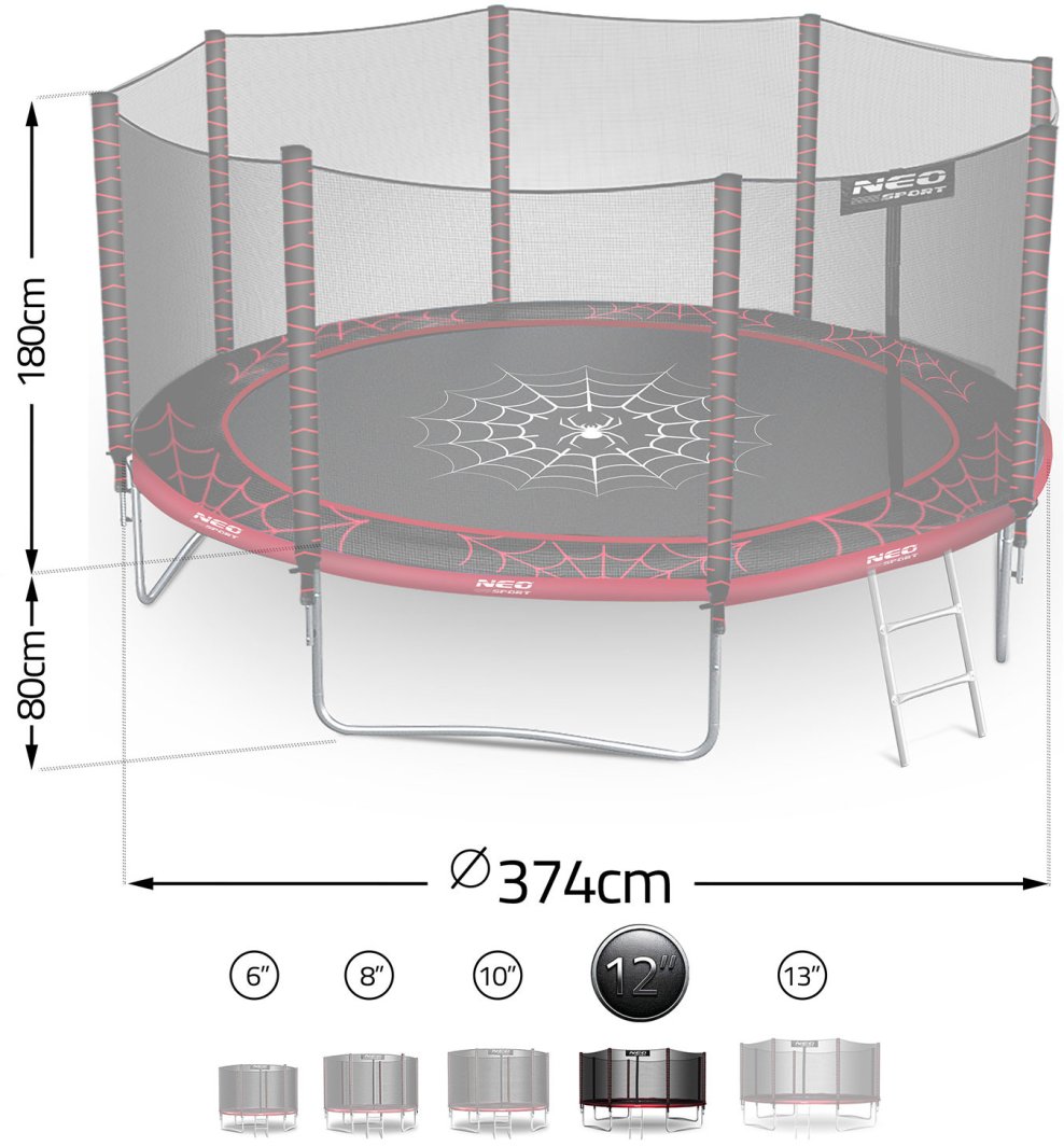 Садовий батут Neo-Sport Садовий батут 12 футів/374 см із вуличною сіткою та драбиною