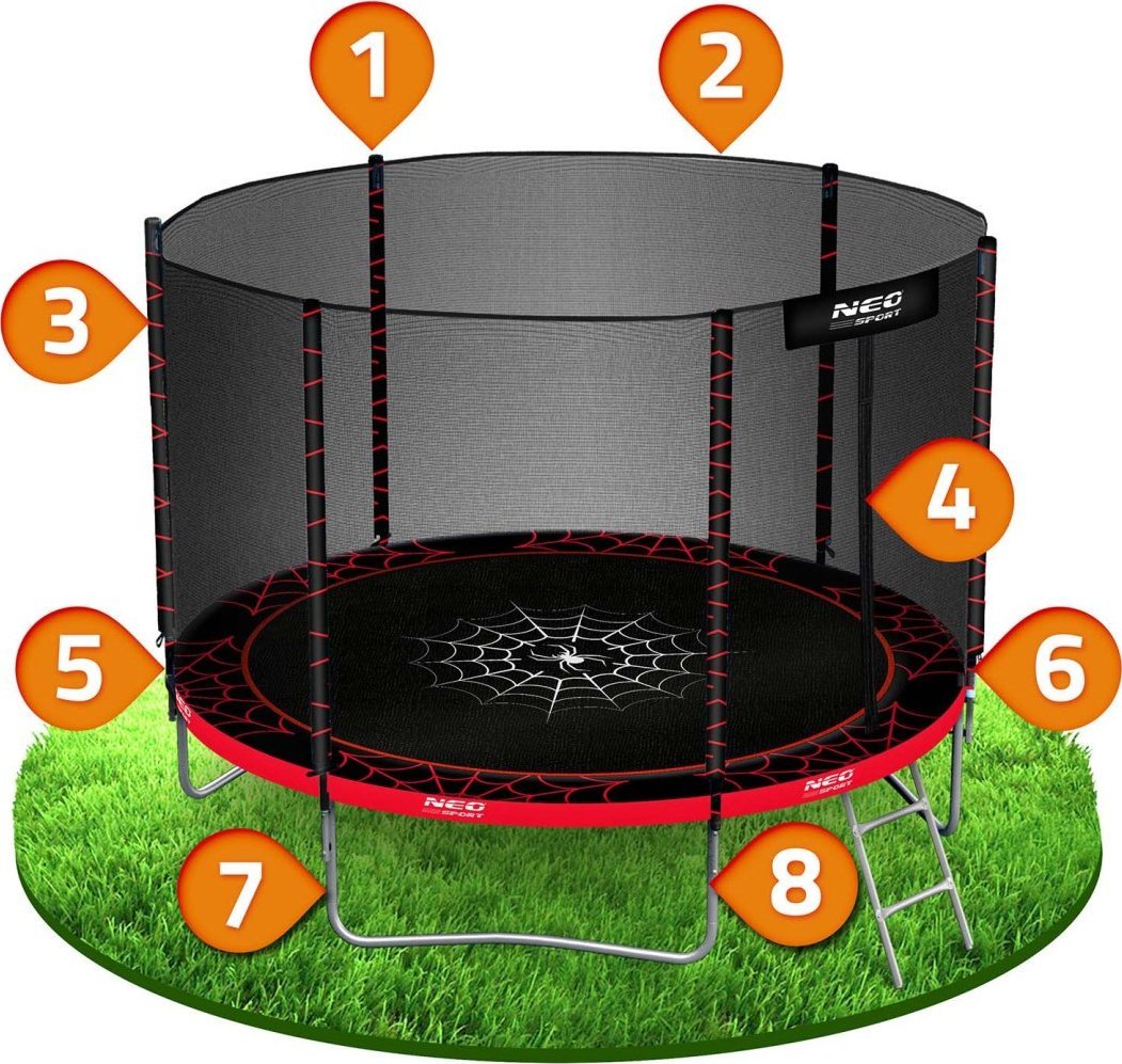 Садовий батут Neo-Sport Садовий батут 8 футів/252 см із зовнішньою сіткою та драбиною