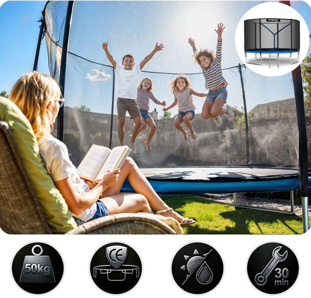 ⭐⭐⭐⭐⭐ Міцний садовий батут 183 см (6 футів) У набір входить: батут 183 см (6 футів) на 3-х подвійних ніжках, міцна металева драбина, зовнішня (захисна) сітка – закривається на блискавку, 6 стійок, закріплених поролоном.✅ Стійкість до погодних умов.✅Стійкі до ультрафіолету матеріали.✅ Рама з оцинкованої сталі.⭐ Преміальна якість.Ідеальний вибір для людей, які шукають батут із дійсно міцною основою!Каркас батута NEO SPORT виготовлений з високоякісних оцинкованих сталевих труб, стійких до корозії, УФ-випромінювання та інтенсивного використання.Для підвищення безпеки використовується щільний амортизуючий поролон, який захищає від ударів і додає комфорт під час гри.✅ Діаметр 183 см – стійка конструкція навіть при більших навантаженнях.✅ Висота 55 см – оптимальний підйом батута для комфорту та безпеки.✅ Точні з’єднання та посилення – довговічність, якій можна довіряти протягом багатьох сезонів.Рама, яка не підведе – незалежно від погоди та інтенсивності гри.⭐⭐⭐⭐⭐ Потужність, довговічність, комфорт!Щільний кийок – максимальний захист і безпека.Швидкосихаюча поверхня – поверхня з сучасних матеріалів не затримує вологу, тому батут готовий до використання відразу після дощу.Міцні пружини – динамічний відскок і довговічність.Захисний килимок із міцних і стійких матеріалів: 310 г/м2 ПВХ 10 мм EPE піна 130 г/м2 PE Міцніша та довговічніша сітка нового покоління Безпека – надзвичайно міцна сітка захищає від падіння, забезпечуючи тривалий захист.✅ Дуже міцна сітка забезпечує безпеку під час гри.Спеціальна технологія плетіння гарантує, що вона витримає навіть найсміливіші викривлення та гарантує безпеку.Довговічність – стійка до сонця і дощу, зберігає свої властивості роками, гарантуючи комфорт і безпеку.Великий простір, велика розвага!Батут NEO SPORT з вражаючим діаметром 183 см забезпечує багато місця для стрибків – ідеально підходить для дітей і дорослих!✅ Вантажопідйомність до 50 кг – безпечна розвага.✅ Велика поверхня для стрибків = більше руху, сміху та енергії.✅Стійка конструкція та високоякісні матеріали – призначені для щоденного використання.Більше місця = більше задоволення!Довші пружини = кращі стрибки Ми використали подовжені та сильно натягнуті пружини з підвищеною гнучкістю – для ще кращого відскоку та комфорту під час стрибків.✅ Підвищена еластичність і довговічність.✅ Плавний, динамічний відскок без ривків.✅ Краща амортизація та безпека використання.Не кожна пружина дає однаковий ефект – вибирайте батут з компонентами, які дійсно покращують якість задоволення!Матеріал, який працює з вами!Високоякісний килимок для стрибків не тільки еластичний і стрибає, але також дихає і стійкий до зовнішніх умов.✅Дихаючий матеріал – пропускає повітря, забезпечуючи комфорт під час інтенсивної гри.✅ Стійкість до вологи та ультрафіолетового випромінювання – витримає навіть найсуворіші погодні умови.Стрибайте впевнено, безпечно та комфортно – незалежно від погоди!Здорова розвага для дітей і дорослих. Стрибки на батуті – це не тільки розвага для дітей, але й чудове тренування для дорослих!✅ За годину можна спалити до 500-700 ккал – більше ніж під час бігу!✅ Ви зміцнюєте м’язи ніг, живота та спини.✅ Ви покращуєте свою фізичну форму, баланс та координацію.✅ Це вид активності, який розвантажує суглоби і водночас ідеально формує фігу