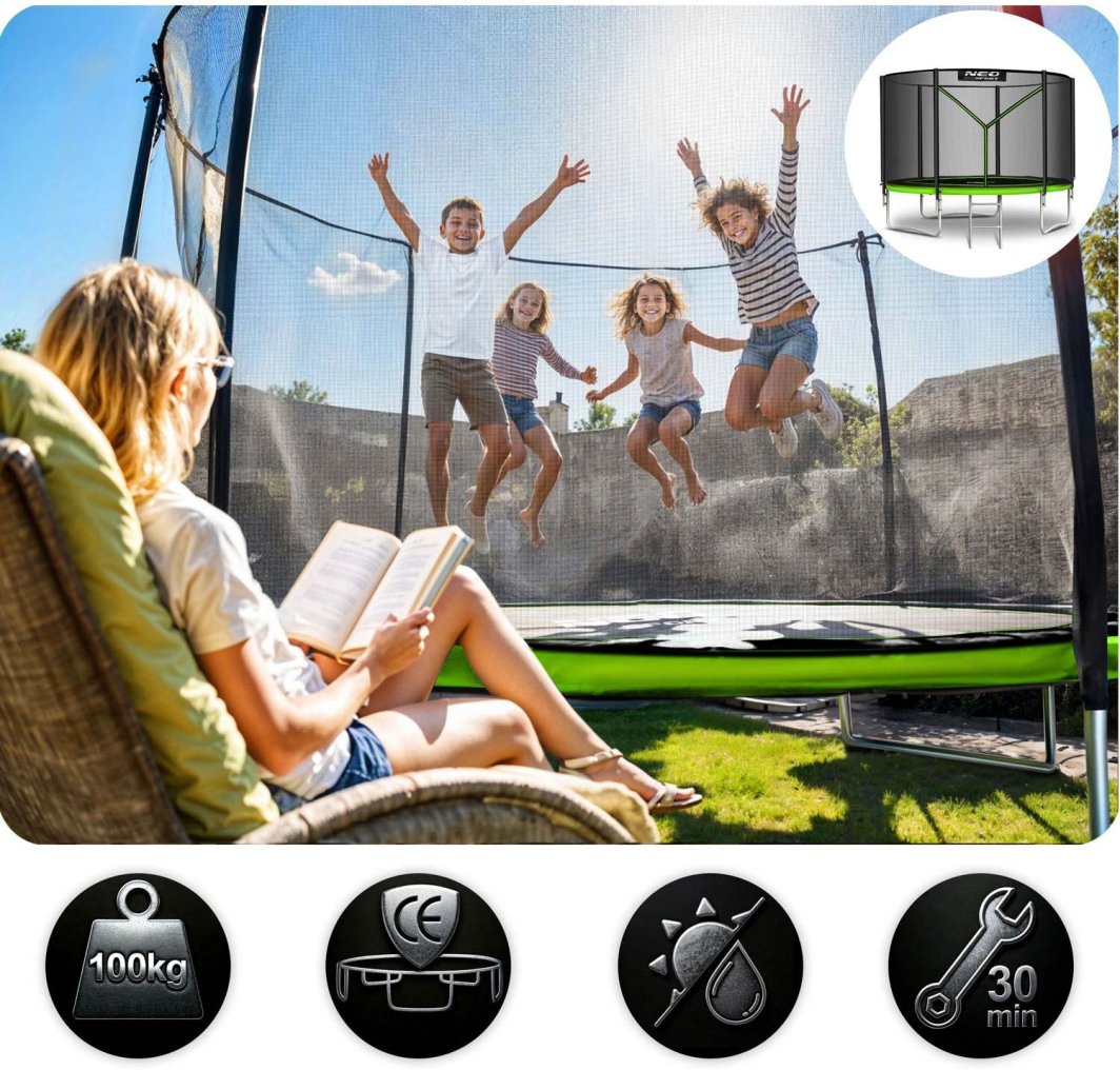 ⭐⭐⭐⭐⭐ Міцний садовий батут 252 см (8 футів) У набір входить: батут 252 см (8 футів) на 3-х подвійних ніжках, суцільна металева драбина, зовнішня (запобіжна) сітка на блискавці, 6 стовпчиків, захищених пінопластом ✅ Стійкий до погодних умов.✅ УФ-стійкі матеріали ✅ Рама з оцинкованої сталі ⭐ Преміальна якість.Ідеальний вибір для людей, які шукають батут із дійсно міцною основою!Каркас батута NEO SPORT виготовлений з високоякісних оцинкованих сталевих труб, стійких до корозії, УФ-випромінювання та інтенсивного використання.Для підвищення безпеки використовується щільний амортизуючий поролон, який захищає від ударів і додає комфорт під час гри.✅ Діаметр 252 см – стабільна конструкція навіть при більшому навантаженні ✅ Висота 55 см – оптимальний підйом батута для комфорту та безпеки ✅ Точні з’єднання та посилення – довговічність, якій можна довіряти протягом багатьох сезонів Рама, яка не підведе вас – незалежно від погоди та інтенсивності гри.⭐⭐⭐⭐⭐ Потужність, довговічність, комфорт!Товста палиця – максимальний захист і безпека.Швидкосихаюча поверхня – поверхня з сучасних матеріалів не затримує вологу, тому батут готовий до використання одразу після дощу.Міцні пружини – динамічний відскок і довговічність.Захисний килимок із міцних і стійких матеріалів: 310 г/м2 ПВХ 10 мм EPE піна 130 г/м2 PE Міцніша та довговічніша сітка нового покоління Безпека – надзвичайно міцна сітка захищає від падіння, забезпечуючи тривалий захист.✅ Дуже міцна сітка забезпечує безпеку під час гри.Спеціальна технологія плетіння гарантує, що вона витримає навіть найсміливіші викривлення та гарантує безпеку.Довговічність – стійка до сонця і дощу, зберігає свої властивості роками, гарантуючи комфорт і безпеку.Великий простір, велика розвага!Батут NEO SPORT з вражаючим діаметром 252 см забезпечує багато місця для стрибків – ідеально підходить для дітей і дорослих!✅ Вантажопідйомність до 100 кг – безпечна розвага ✅ Велика поверхня для стрибків = більше руху, сміху та енергії ✅ Стабільна конструкція та високоякісні матеріали – призначені для щоденного використання Більше простору = більше радості!Довші пружини = кращі стрибки Ми використали подовжені та сильно натягнуті пружини з підвищеною гнучкістю – для ще кращого відскоку та комфорту під час стрибків.✅ Більша еластичність і довговічність ✅ Плавний, динамічний відскок без ривків ✅ Краще поглинання ударів і безпечність використання Не кожна пружина дає однаковий ефект – обирайте батут із компонентами, які справді покращують якість задоволення!Здорова розвага для дітей і дорослих. Стрибки на батуті – це не тільки розвага для дітей, але й чудове тренування для дорослих!✅ За годину можна спалити до 500-700 ккал – більше ніж під час бігу!✅ Ви зміцнюєте м’язи ніг, живота та спини ✅ Ви покращуєте свою фізичну форму, баланс та координацію ✅ Це форма активності, яка розвантажує суглоби та водночас ідеально формує вашу фігуру Матеріал, який працює з вами!Високоякісний килимок для стрибків не тільки еластичний і стрибає, але також дихає і стійкий до зовнішніх умов.✅ Дихаючий матеріал – пропускає повітря, забезпечуючи комфорт під час інтенсивної гри ✅ Стійкий до вологи та УФ-випромінювання – витримає навіть найсуворіші погодні умови Стрибайте впевнено, безпечно та комфортно – незалежно від погоди!Стійкість, без