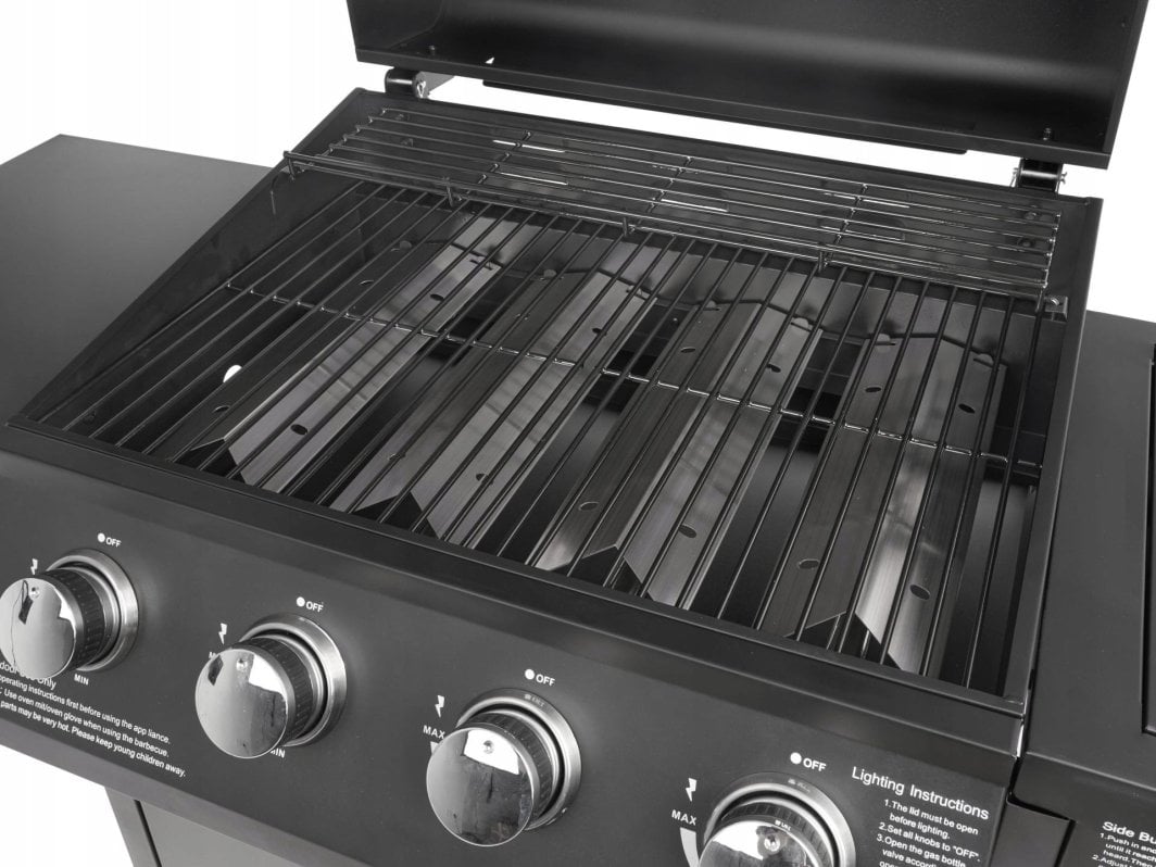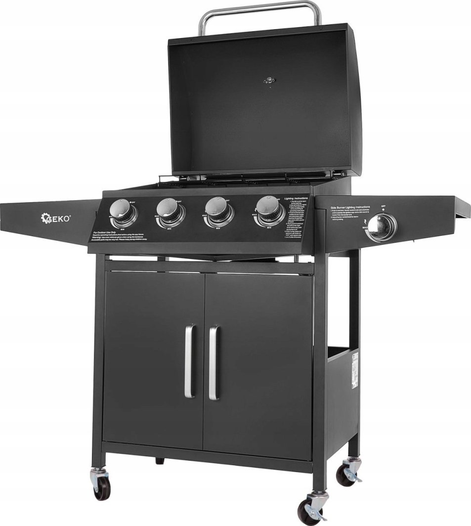 Універсальність гриля Газовий гриль має чотири основні конфорки, які забезпечують рівномірний розподіл тепла, а також конфорку, призначену для каструлі або чайника.Це означає, що ви можете смажити на грилі та готувати улюблені страви одночасно.Ніяких кулінарних обмежень!Потужна потужність нагріву Завдяки загальній потужності нагріву 14,5 кВт цей гриль швидко нагріється та приготує.Соковиті стейки, смачні овочі та ароматні ковбаски будуть готові в одну мить.Насолоджуйтесь смаком без довгих очікувань!Практичність на першому місці. Наш гриль розроблено з думкою про ваш комфорт.Він має просторе відділення, де можна зберігати аксесуари для гриля, наприклад інструменти чи спеції.Все, що вам потрібно, у вас під рукою!Крім того, він оснащений кришкою з вбудованим термометром, щоб ви завжди могли контролювати температуру під час смаження.Індивідуальний контроль Кожна конфорка має окреме регулювання, що дає вам повний контроль над температурою в різних зонах гриля.Ви можете легко адаптувати полум’я до різних страв, щоб досягти ідеальних результатів смаження.А завдяки п’єзоелектричному запальнику розпочинається приготування на грилі швидко та без проблем.Мобільність і стійкість Наш гриль оснащений чотирма поворотними колесами, в тому числі два з гальмами.Завдяки їм ви можете вільно переміщати мангал по саду і розміщувати його в зручному місці.Ви можете легко налаштувати його відповідно до своїх уподобань.Легко чистити Після приготування на грилі не хвилюйтеся про жирні плями.Наш гриль має слив зі спеціальною ємністю для жиру, яка ефективно збирає надлишки жиру та м’ясний сік.Це полегшує очищення та утримання гриля в чистоті.