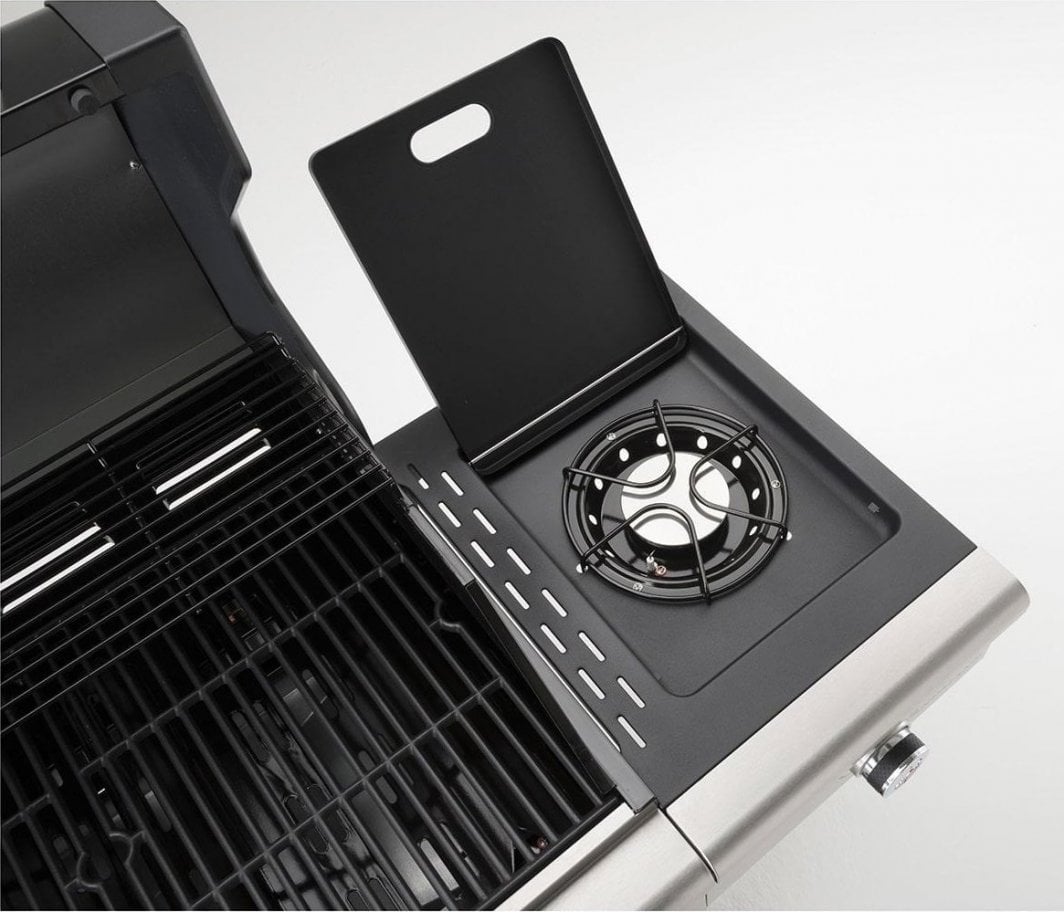 Візок для газового гриля Triton 4.1 PTS Газовий гриль Triton 4.1 PTS пропонує довговічні чавунні решітки для гриля з просторою поверхнею гриля.Двостінна кришка оптимально зберігає тепло, а завдяки вбудованому термометру можна оптимально контролювати температуру.Завдяки практичній підставці для підігріву ви можете легко підтримувати їжу теплою в будь-який час.Просторі бічні полиці також пропонують місце для приготування їжі, а вбудована бічна конфорка забезпечує додаткову різноманітність гриля.Кожен газовий гриль Triton також оснащений системою PTS (Precision Temperature System) Landmann, яка забезпечує оптимальний розподіл тепла під час смаження.Ми також надаємо 10 років гарантії на решітку для гриля та плиту для гриля.виготовлений із комбінації лакованого сталевого листа та полірованої нержавіючої сталі;центральна частина декоративно покрита глянцевим порошковим лаком;сторони кришки з литого під тиском алюмінію з порошковим покриттям;передня панель і фасади бічних полиць з полірованої нержавіючої сталі, двостінна кришка і дверцята шафи пофарбовані порошковою фарбою;міцна, стійка до високих температур камера згоряння;мобільна база на 4 роликах, що обертаються на 360 градусів, з гальмом;запатентована система рівномірного випромінювання температури PTS;потужність 15,0 кВт;4 незалежних конфорки з нержавіючої сталі (4 х 3 кВт);бічна конфорка для варіння (3 кВт);подвійна емальована чавунна решітка для гриля;сталева, емальована решітка для розігріву їжі;кришки конфорок, практична система збору розтопленого жиру – зі знімним піддоном для крапель і висувною ємністю для спорожнення;індикатор температури в кришці;нижня шафа, що закривається, з отвором для газового балона 11 кг;електронний розпал в кнопці – окремо для кожної конфорки;вішалка для аксесуарів для гриля;в комплекті шланг і редуктор тиску;можна мити в посудомийній машині: дефлектори, піддон і контейнер для жиру;Гарантія 5 років на пальник і нержавіючу сталь (поширюється на перфораційну корозію);Гарантія 10 років на решітки та жарову плиту (поширюється на корозію перфорації);поверхня для гриля 65 x 44 см – підходить для прибл. 12 осіб;розміри гриля: 140 x 121 x 57 см