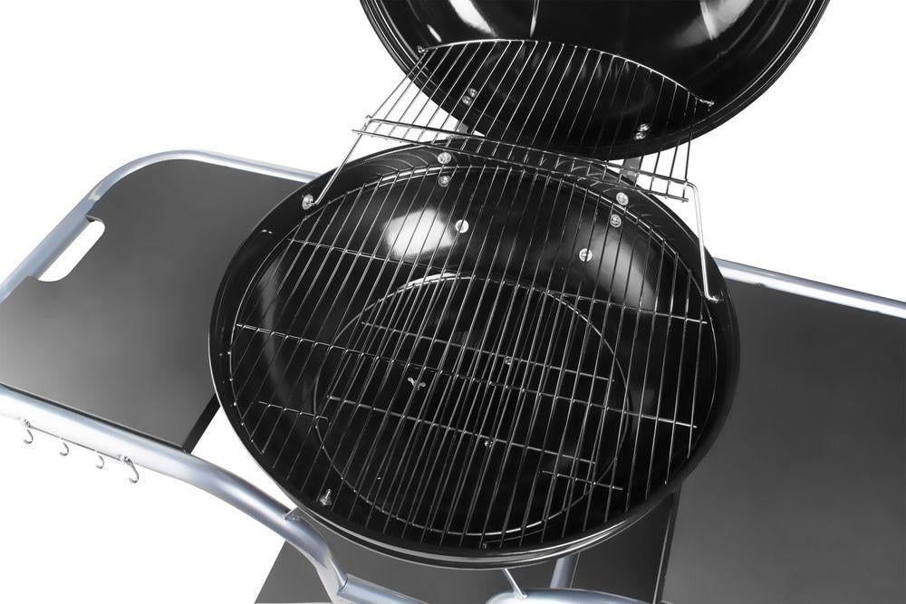 Решітка для садового гриля Fieldmann Charcoal 54 см FZG 1014 Садовий гриль – незамінний посередник у зустрічі друзів за смаженим шматком м’яса або овочів, особливо в спекотні літні дні та вечори.Мангал виготовлений зі стійких і міцних матеріалів.Завдяки коліщаткам мангал надзвичайно мобільний і ним може керувати одна людина.Гриль діаметром 54 см дозволяє готувати їжу для більшої групи людей.Гриль має злегка від’ємну попільничку, що в цілому підвищує комфорт використання під час роботи та подальшого очищення.Технічні дані: Розмір гриля: 126 x 62 x 90 см Діаметр решітки: 54 см Ширина (см): 126 см Висота (см): 90 см Матеріал: сталь Полиця: так Колір: чорний Інші характеристики: Хромована решітка.Обкладинка.Термометр