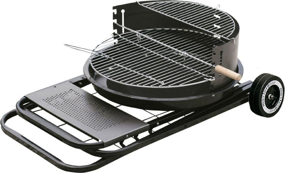 Мангал складний круглий, чаша і обтічник сталевий (діаметр 54,5 см), емальований, решітка і нагрівач – сталь хромована, комплектація: колеса, полиця нижня, полиця передня.Поверхня гриля 1885 см² Вага 10 кг Розміри виробу (ДxШxВ) 55 x 54,5 x 84 см Матеріал решітки/каміна Хромована сталь