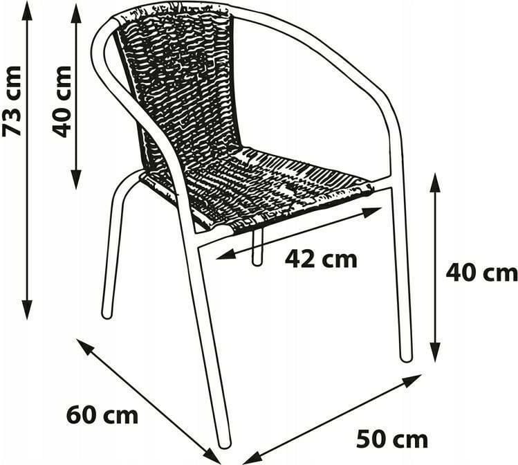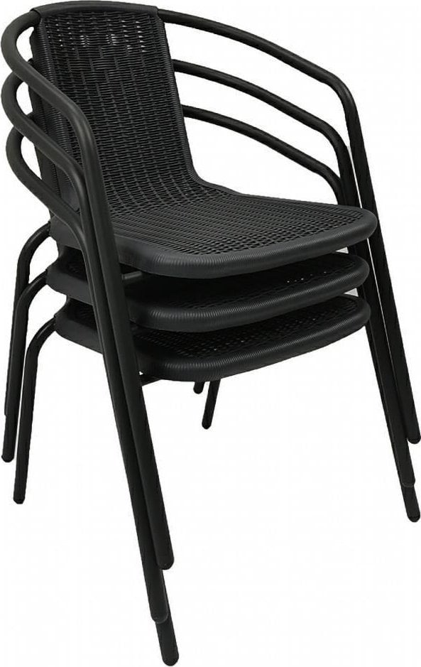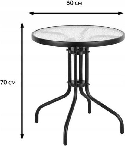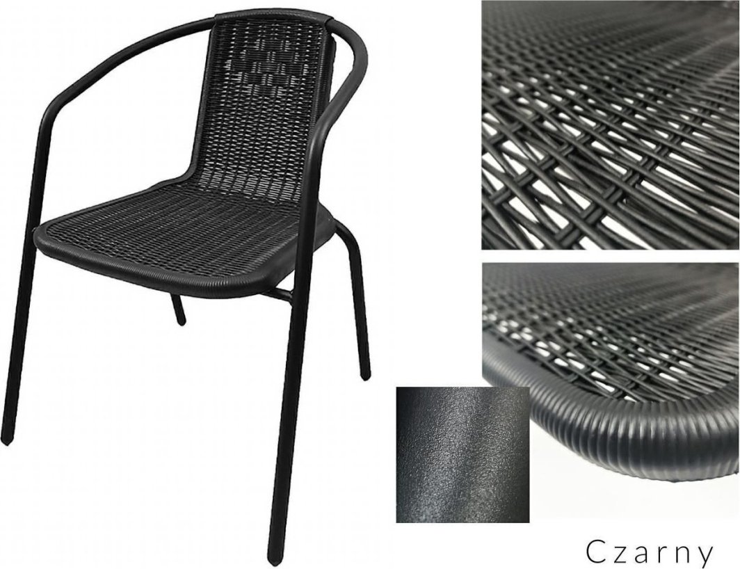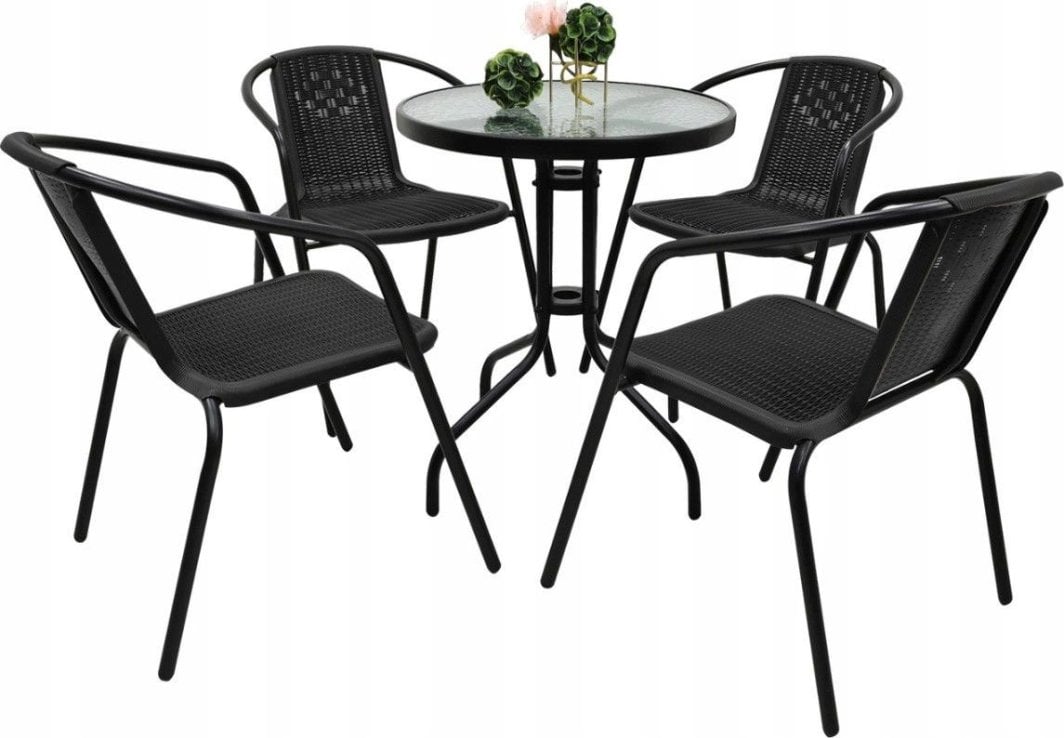 Садовий кавовий набір для тераси на 4 людини, стіл і стільці, чорний, 4x стілець LORETTO, чорний – 5901386273048 Стіл BERGAMO, fi 60, чорний – 5901386272843 Зручний, сучасний набір садових меблів, що складається зі столу та зручних стільців.Ідеально підходить для саду, ділянки або тераси.Комплект меблів виготовлений з належною ретельністю з використанням високоякісних матеріалів.Міцна конструкція зі сталі з порошковим покриттям, оббивка крісел з текстилю і навіть загартоване скло, з якого виготовлена ​​стільниця, гарантують багаторічну експлуатацію.Висока міцність, комфорт у використанні та елегантний дизайн, який не підлягає часу.Він був створений з урахуванням найвибагливіших клієнтів.Високий комфорт використання, найвища якість використаних матеріалів і надзвичайно елегантний зовнішній вигляд.Представлені стільці мають металеву структуру з порошковим покриттям, що робить їх стійкими до погодних умов і в той же час гарантує високу стійкість.Спинка має ідеальний профіль, що гарантує комфортний відпочинок.Безперечною перевагою столу є стільниця із загартованого скла з мозаїчною структурою.Така комбінація забезпечує високий комфорт використання і, в той же час, безпеку.Завдяки використаній конструкції стіл стоїть стійко та надійно.Технічні характеристики крісла Loretto: – Ширина: 55 см – Глибина: 59 см – Висота: 73 см – Вага: 2,8 кг – Призначення: використання в приміщенні та на вулиці – Матеріал: каркас: сталь;сидіння: пластик (пластик, що імітує ротанг) – Обробка: сталь з порошковим покриттям – Функції: не регулюється – Догляд: не потребує обслуговування, легко миється – Інструкція по збірці: не вимагає загвинчування – Штабелируемая: так – Максимальне навантаження: 120 кг Специфікація столу BERGAMO fi60: – Практичний стіл для саду, тераси або балкону – Стільниця з міцного загартованого скла з візерунком, що брижіє водою – Сталеві профілі з порошковим покриттям – Стільниця без отвору – Підходить для зовнішнього та внутрішнього використання – Легкий монтаж – Розмір стільниці fi: 60 см – Висота: 70 см