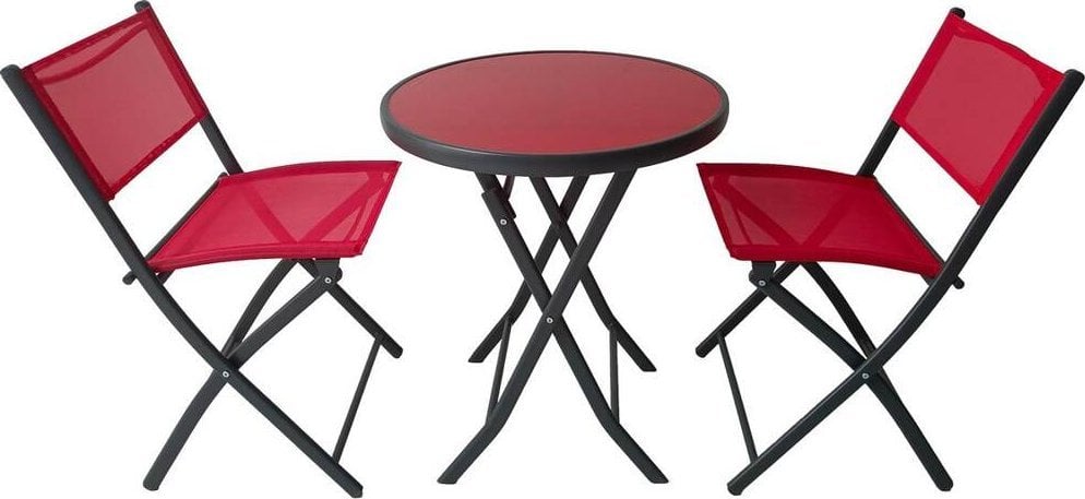 Saska Garden КОМПЛЕКТ МЕБЛІВ ДЛЯ БАЛКОНУ, КРУГЛИЙ СТІЛ І 2 СКІДНИХ СТІЛЬЦЯ, ЧЕРВОНИЙ