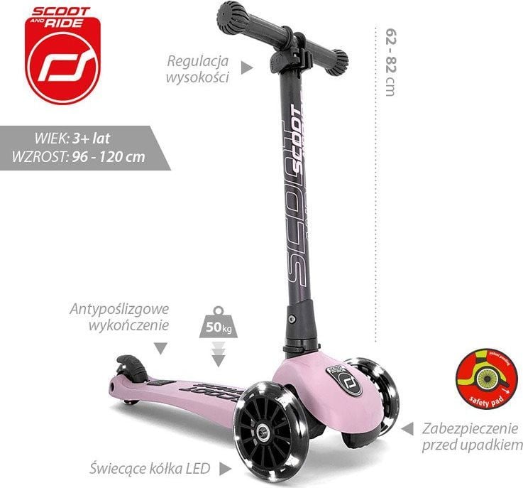 ScootAndRide Highwaykick 3 Led Scooter Вишуканий у кожній деталі Highwaykick 3 LED — це остання версія інноваційного триколісного балансирного самоката від австрійського бренду SCOOT&RIDE, збагаченого світлодіодними колесами, які підсвічуються під час їзди.Нова колекція в стильних, чорних і пастельних тонах.Ідеально підходить для активних дітей віком прибл. 3 роки зростом до 120 см, тобто до прибл. 7 років. Воно росте разом з дитиною. Легкий і дуже простий в управлінні завдяки регульованій по висоті алюмінієвій ручці.Ідеально збалансований, стабільний і безпечний у використанні.Трансформація без інструментів Завдяки інноваційній можливості складання ручки (за кілька секунд, без інструментів, однією кнопкою) самокат дуже зручний у транспортуванні та перенесенні.Safety Highwaykick 3 LED оснащений запатентованою революційною системою Safety-Pad, тобто спеціальною висувною широкою накладкою, розташованою в нижній частині передньої частини самоката, яка запобігає, серед іншого, перекиданню на нерівній місцевості або застряганню коліс.Більша стабільність завдяки фіксатору керма. Highwaykick 3 LED оснащений фіксатором керма, який запобігає повороту шляхом балансування тіла – скутер можна вести лише прямо.Це особливо корисно під час навчання їзді на самокаті.Специфікація Scoot & Ride Highwaykick 3 LED Ash: • рекомендований вік дитини: 3 – 7 років • рекомендований зріст дитини: 96 – 120 см • максимальне навантаження: до 50 кг • вага виробу: 2,6 кг • регулювання висоти ручки: 62 – 82 см • матеріал: алюміній і пластик • колір: кремово-сіра платформа з чорною ручкою та чорним покриттям