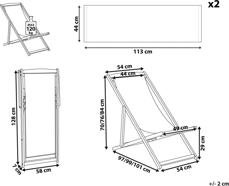 Шезлонг Beliani Garden і набір з 2 змінних тканин (різні варіанти) темне дерево ANZIO