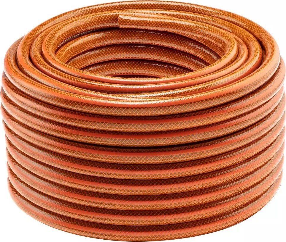 Шланг садовий NEO Economic 3/4″ 50м, 4 шари (15-805) Садовий шланг з діаметром підключення ¾” і довжиною 50 м. Висока міцність досягається завдяки чотиришаровій конструкції з гнучкого ПВХ і поліефірної пряжі з поперечним обплетенням.Пристосований для роботи в будь-яких умовах – при температурах від -10°C до +50°C, додатково стійкий до відкладення водоростей і УФ-випромінювання.Призначення: полив саду, догляд за садом, чищення меблів та садового інструменту. Характеристики: діаметр підключення: ¾”, довжина: 50 м, 4-шарова конструкція, робочий тиск: 7 бар, тиск розриву: 20 бар, стійкість до температур від -10°C до +50°C, відкладення водоростей та УФ-випромінювання. Комплектація: садовий шланг