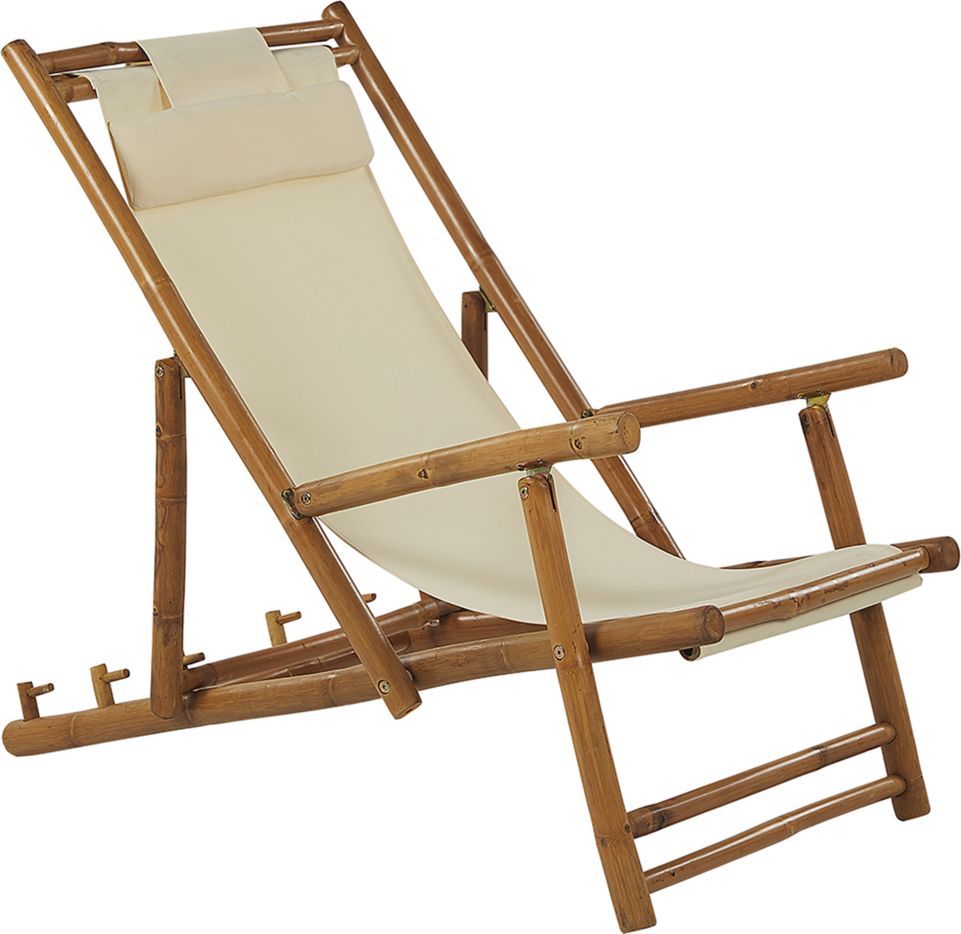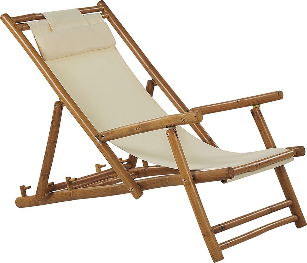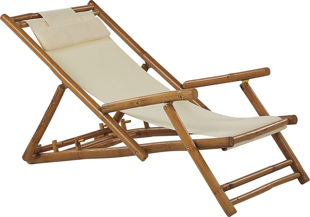 Shumee Набір з 2 садових шезлонгів, бамбук, світле дерево, білий ATRANI