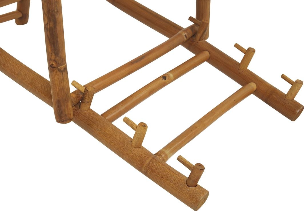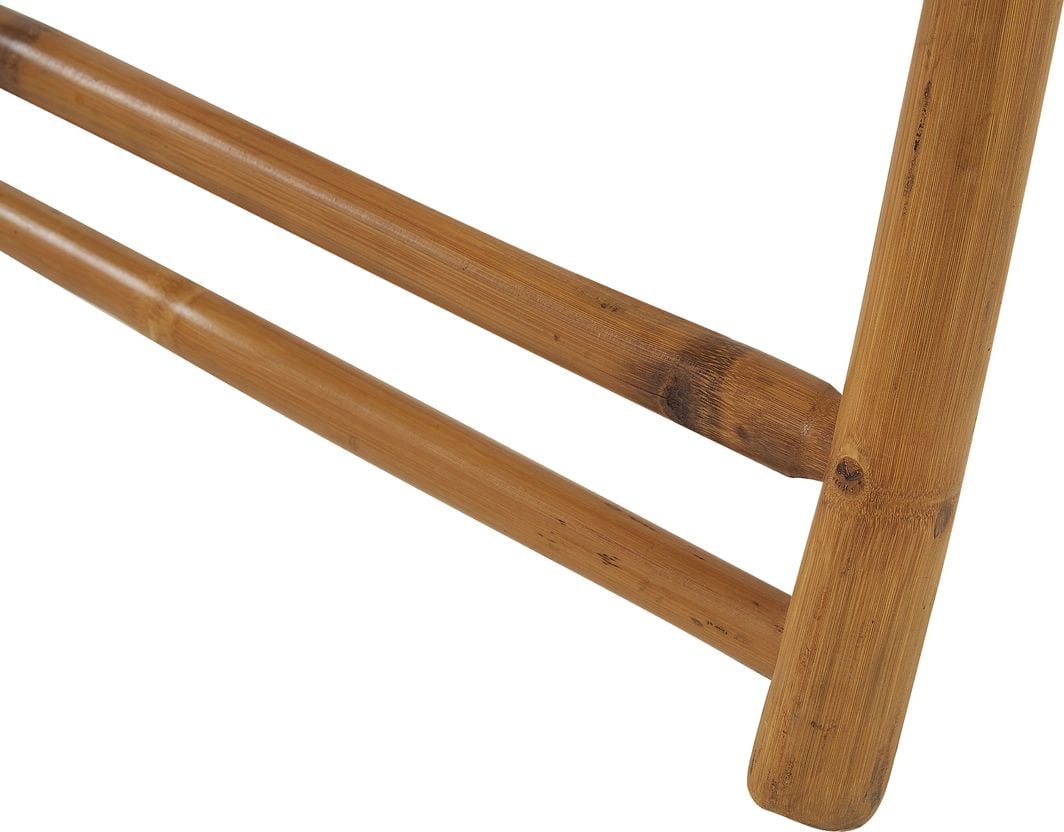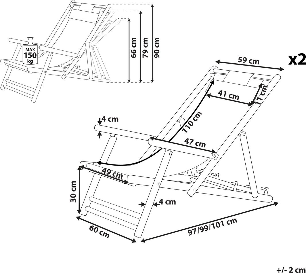 Цей унікальний набір з 2 шезлонгів чудово доповнить декор будь-якого балкона чи саду.Виготовлені з міцного бамбукового дерева, шезлонги оснащені сидінням із стійкого до УФ-випромінювання поліестеру з подушкою для голови.Складна рама полегшує зберігання, а спинка, що регулюється в 3 положеннях, забезпечить очікуваний комфорт.Цей шезлонг є ідеальним місцем для відпочинку з книгою або чашкою кави на сонці.Висота: 90 Ширина: 60 ​​Глибина: 101 Вага: 16 Висота сидіння: 30 Матеріал: Бамбук