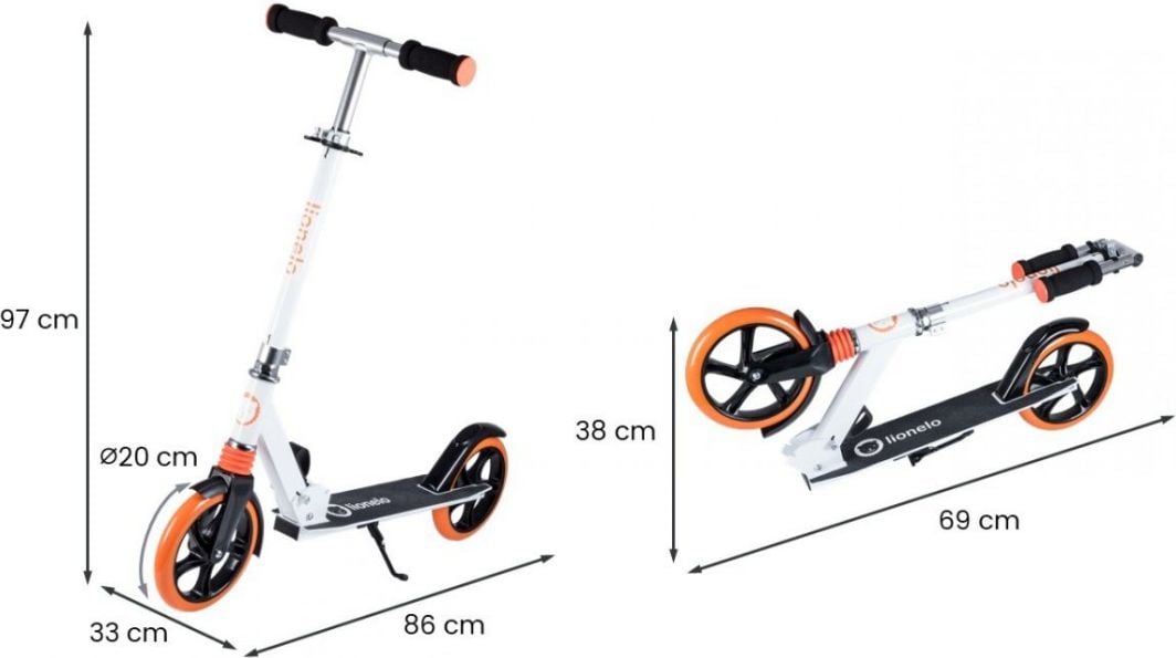 Самокат LIONELO LUCA – Легка, міцна конструкція – Амортизатор ShockResist – Міцність 100 кг – Великі колеса 200 мм – Підшипники ABEC-7 Lionelo Luca – це самокат, призначений для дітей, підлітків і дорослих.Рама і кермо виготовлені з легкого і міцного алюмінієвого сплаву.Ідеально підходить для асфальтових покриттів і тротуарів з твердим покриттям.Складна конструкція полегшує зберігання та транспортування.Підшипники класу ABEC7 у поєднанні з поліуретановими колесами PU 200 MM дозволяють знизити опір коченню та, як наслідок, підвищити швидкість руху.Крім того, для забезпечення безпеки на задньому колесі встановлено ножне гальмо.Приголомшливі враження від їзди. Скутер оснащений великими 20-сантиметровими колесами PU HIGH REBOUND, які полегшують прискорення з меншими зусиллями.Новітні технології – підшипники ABEC 7 забезпечують відмінну якість кочення.Вони ідеально підходять для будь-якої поверхні.Підвіска ShockResist на кермі – забезпечує максимальний комфорт і стабільність водіння.Значно зменшує удари на поганих поверхнях.Безпека на першому місці. Заднє гальмо – Повністю закриває колесо, забезпечуючи ефективне гальмування.Він також виконує функцію бризковика, захищаючи від бризок.Платформа проти ковзання – розроблена для того, щоб стопа була стабільною та не ковзала під час катання.Особлива конструкція значно підвищує рівень безпеки.Безпечне водіння – Кермо з 3-ступінчастим регулюванням висоти.Ергономічні ручки дозволяють розвантажити руки під час вібрації на нерівній поверхні.Зручність у деталях. Міцна підставка. Встановлена в центрі ваги, вона запобігає випадковому перекиданню самоката.Виготовлений з міцного металу.Складана конструкція – система швидкого складання з подвійним захистом.Скутер легко поміститься в багажник автомобіля.Маленький і компактний – Мала вага: 4,1 кг.Ви можете без особливих зусиль транспортувати скутер, як валізу на колесах, у режимі ТРОЛЕЙ.Сертифікат PONY Наш продукт схвалений найкращою, відомою міжнародною дослідницькою установою – PONY.Він займається ліцензуванням товарів для дітей та всіх частин їхнього обладнання, зокрема спортивного обладнання.Випробувана продукція проходить ретельні випробування щодо вимог безпеки та якості.