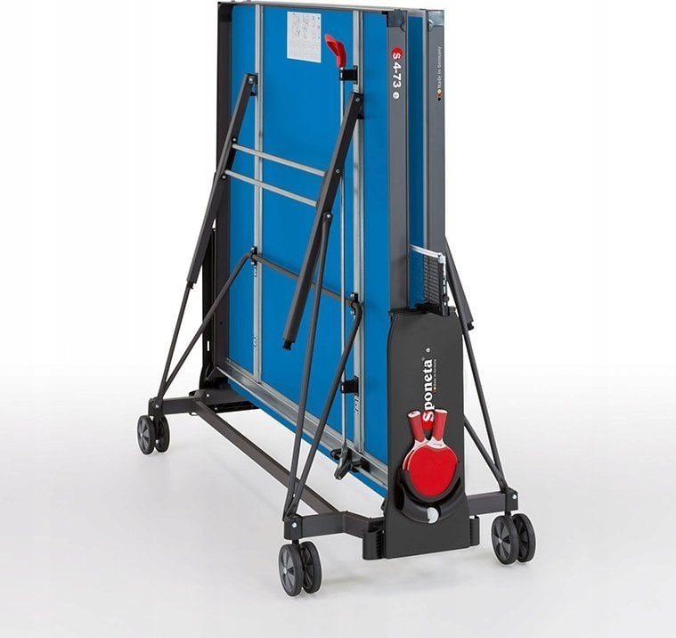 Стіл для настільного тенісу SPONETA S4-73e – ідеально підходить для гри на відкритому повітрі. Стіл для настільного тенісу SPONETA S4-73e – відмінний вибір для любителів ігор на природі.Його міцна конструкція та добре продумана конструкція гарантують не тільки чудове задоволення, але й довговічність та стабільність у будь-яких умовах.Стійкість до погодних умов і ультрафіолетового випромінювання Цей стіл створений для використання на вулиці, що робить його стійким до різних погодних умов і ультрафіолетового випромінювання.Ви можете насолоджуватися грою в саду, на терасі або у дворі, не турбуючись про вплив погоди на його стан.Регулювання нерівностей землі до 30 мм. Одним з ключових переваг столу SPONETA S4-73e є можливість регулювання висоти до 30 мм, що дозволяє стабільно розташовуватися навіть на нерівній місцевості, забезпечуючи комфорт під час гри.Вбудоване місце для ракеток і м’ячів. У стіл входить практичний тримач для ракеток і м’ячів, що робить його повноцінним ігровим набором.Завдяки цьому у вас є все необхідне для початку гри в одному місці.Мобільність завдяки прогумованим колесам Стіл SPONETA S4-73e оснащений чотирма прогумованими колесами діаметром 128 мм, що значно полегшує його переміщення.Це дозволяє вам вільно переміщати його куди завгодно, що особливо корисно, коли ви хочете змінити місце гри.Розміри і вага столу для настільного тенісу SPONETA S4-73e. Розміри столу 2740 х 1525 х 760 мм, вага 59,5 кг.У складеному вигляді стіл має компактні розміри 184 x 72 x 155 см, що дозволяє легко зберігати його, коли він не використовується.Технічні характеристики SPONETA S4-73e Стіл для настільного тенісу Бренд: Sponeta Модель: SPO-S4-73e EAN (GTIN): 4013771137192 Код виробника: SPO-S4-73e Домінуючий колір: синій Вага: 59,5 кг Вага продукту в індивідуальній упаковці: 65 кг Розміри столу: 2740 x 1525 x 760 мм Розміри для зберігання: 184 x 72 x 155 см Профільні балки для ніжок: 30 x 30 мм Можливість виправити нерівності землі: до 30 мм Колеса: 4 прогумовані колеса діаметром 128 мм Дозволяє грати для одного гравця Виготовлено відповідно до стандарту: EN 14468-1 клас C Оснащено тримачем сітки та Perfect II net Тримач для ракетки та м’яча Вироблено в Німеччині Замовляйте зараз, щоб насолоджуватися найкращою продуктивністю та якістю гри!Ідеальний вибір для будь-якого любителя настільного тенісу – доступний сьогодні в Morele!