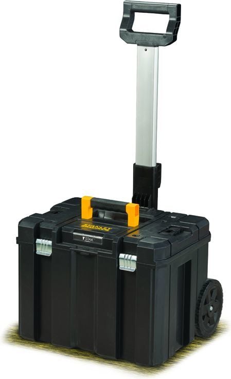Ящик TSTAK з автоматичною кришкою (FMST1-75753) Опис: Ящик великого об’єму з максимальною ємністю 30 кг Міцні 7″ колеса Телескопічна ручка з максимальною вантажопідйомністю 50 кг Кнопка ручки для відкриття та закриття кришки Гачок для кріплення модулів Табличка з назвою/описом Важкі антикорозійні металеві засувки для більшої міцності та довговічності