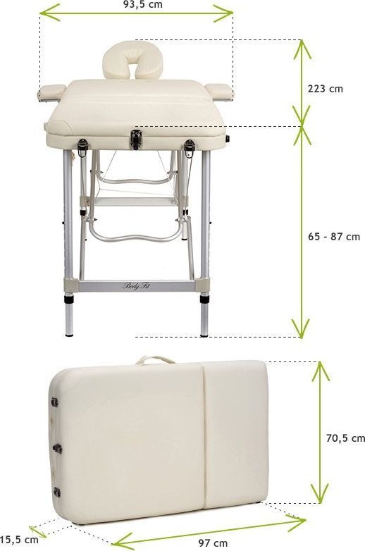 Масажні ліжка є ідеальним рішенням для людей, які працюють поза офісом, напр. вдома або на фірмі клієнта.Легка і стійка, але функціональна конструкція полегшує роботу фізіотерапевта або масажиста.Переносний стіл ідеально підходить, зокрема, для спортивних змагань, особливо в травмонебезпечних видах спорту.БЕЗКОШТОВНА сумка, що додається до кожного ліжка, забезпечить комфорт і свободу перенесення.НАШІ МАСАЖНІ ЛЕЖКА МАЮТЬ ВІДПОВІДНІ СЕРТИФІКАТИ, ЯКІ ПІДТВЕРДЖУЮТЬ ЇХ ЯКІСТЬ ТА ВІДПОВІДНІСТЬ ДИРЕКТИВАМ НА МЕДИЧНІ ВИРОБИ!Вага ліжка всього 13,0 кг!Вага ліжка з аксесуарами всього 14,5 кг!Високоякісна екологічна шкіра, стійка до масел і води.Робоче навантаження: 250 кг/900 кг Регульована висота 65-87 см. Підйомна панель, яка служить спинкою або для розміщення та розслаблення ніг.Надзвичайно м’яка еко-шкіра, наповнена густою піною, забезпечує максимальний комфорт.2 бічні підлокітники – додайте кілька додаткових см до ширини столу.Зручна сумка для транспортування столу. Передній підлокітник – забезпечує більший доступ до рук, спираючись на руки.У зібраному вигляді всі аксесуари поміщаються в стіл.Складений стіл поміщається в транспортний чохол.Чохол має зручний плечовий ремінь, ручку, місце для ролика і кишеню для дрібниць.ДОДАТКОВІ АКСЕСУАРИ В КОМПЛЕКТІ: Захисні накладки на ніжки Вішалка для рушників Лицьовий отвір із кришкою Регульований підголівник Подвійна ручка для перенесення столу Органайзер, кишеня для косметики Бічні підлокітники Передній підлокітник