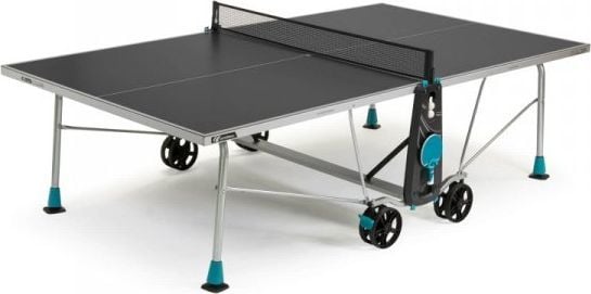 CORNILLEAU TENNIS TABLE 200X OUTDOOR GREY Тенісний стіл 200X від Cornilleau – ідеальна модель для сімейних, дружніх і навіть більш складних ігор.Він стійкий до різних погодних умов, тому ви можете без жодних побоювань зберігати його на відкритому повітрі.Якщо ви шукаєте стіл, який можна поставити як вдома, так і в саду, виберіть 200X.Це хороший вибір, щоб розпочати вашу сімейну пригоду з настільного тенісу.Фахівці з Корнільо у Франції гарантують не менше 10 років задоволення.Антиблікове покриття та 5-міліметрове антивідблискове покриття стільниці: 5-міліметрова поверхня стільниці зі спеціального полімерного ламінату вкрита спеціальним антибліковим покриттям SOFTMAT®.Структура стільниці стійка до подряпин, ударів, УФ-променів і легко миється.Товщина верхньої частини 5 мм: Алюмінієва рама в поєднанні зі стільницею дає товщину 45 мм, і завдяки цьому якість відображення дорівнює якості найбільш професійних столів.На всі вуличні столики надається гарантія щонайменше 10 років розваг.Регульована сітка РЕГУЛЬОВАНА СІТА: сітка має просту та інтуїтивно зрозумілу систему регулювання натягу.Це дозволяє ідеально налаштувати його перед початком гри.РЕГУЛЮВАННЯ ТА СТІЙКІСТЬ: Діаметр рухомої ніжки становить до 104 мм, а діапазон регулювання висоти від -1 до +5 см. Завдяки цьому ви зможете стабільно встановити стіл навіть на нерівних садових поверхнях, щоб вам було зручно грати.Транспортувальні колеса та кишені для аксесуарів ВЕЛИКІ КОЛЕСА З ГАЛЬМУВАННЯМИ: Столи для пінг-понгу Cornilleau мають великі подвійні колеса товщиною 32 мм і діаметром 200 мм.Таке рішення збільшує поворот коліс і стійкість столу.Більше колесо легко перекотиться через великі перешкоди, такі як сходи, пороги, каміння.Він легше долає густу траву та інші нерівні поверхні, а два гальма забезпечують відмінну стабільність і безпеку під час гри.Це також особливо корисно, коли стіл зберігається на трохи нерівній поверхні.КИШЕНІ ДЛЯ АКСЕСУАРІВ: Функціональні кишені, розташовані з обох боків столу, дозволяють зберігати 2 ракетки і 4 м’ячі.Таке рішення гарантує швидкий доступ до необхідних аксесуарів без зайвих пошуків і полегшить дотримання порядку.Кишеня для м’ячів Функціональна кишеня для м’ячів робить їх завжди під рукою.