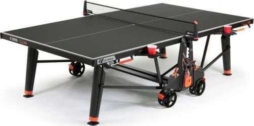 CORNILLEAU STÓŁ TENISOWY 700X OUTDOOR CZARNY 700X to jedyny w swoim rodzaju i najwyższy model z oferty stołów tenisowych do użytku zewnętrznego marki Cornilleau. Ten model oferuje unikatowy design, innowacyjne rozwiązania oraz przemyślane udogodnienia. Także, z pewnością będzie wspaniałym dodatkiem do Twojego domu i dostarczy Ci wyjątkowych wrażeń. Czarny stół z pomarańczowymi wykończeniami łączy w sobie klasę, elegancję i nowoczesność. Dbałość o szczegóły i imponujący, unikatowy design stołu 700X umożliwi nowy wymiar gry w tenisa stołowego oraz nada ekstrawagancji wystrojowi wnętrza. Projektanci Cornilleau zadbali o najmniejsze szczegóły, dodając do nowej kolekcji stołów kilka ważnych dodatków, bazując na opinii klientów oraz własnym 50 letnim doświadczeniu. Licznik, uchwyty na napoje, ochrona rogów stołu czy całkowicie chowana siatka przy składaniu są szczegółami, które wyróżniają stół na tle innych. Eksperci z Cornilleau we Francji gwarantują przynajmniej 10 lat dobrej zabawy. POWOKA ANTYREFLEKSYJNA POWOKA ANTYREFLEKSYJNA: Powierzchnia 8 mm blatu wykonanego ze specjalnego laminatu żywicznego pokryta jest specjalną powłoką antyrefleksyjną MATTOP®. Specjalna struktura blatu jest odporna na zarysowania, uderzenia, promienie UV oraz łatwa w czyszczeniu. Gruba aluminiowa rama w połączeniu z blatem daje grubość 68mm i dzięki niemu jakość odbić dorównuje najbardziej profesjonalnym stołom i sprzyja szybkiej grze. Wszystkie stoły do użytku zewnętrznego zapewniają gwarancję przynajmniej 10 lat dobrej zabawy. REGULOWANA SIATKA: Siatka przy zamykaniu stołu automatycznie chowa się pomiędzy blatami. Zapewnia to zmniejszenie zajmowanego miejsca i zabezpiecza ją przed rozerwaniem lub złamaniem słupka mocującego siatkę. Siatka posiada system regulacji wysokości i napięcia. PODAJNIK PIŁEK: Bardzo praktyczny, usytuowany od strony każdego zawodnika pod blatem stołu. Podajnik mieści jedną piłeczkę. Wbrew pozorom mało potrzebny dodatek, ale tylko jak lubisz ściskać piłeczkę w drugiej ręce podczas gry. LICZNIK PUNKTÓW LICZNIK PUNKTÓW: Przy krawędziach stołu znajdują się manualne liczniki do zdobytych punktów gry. Poręczne, praktyczne i satysfakcjonujące…gdy wygrywasz. KIESZENIE NA AKCESORIA: Funkcjonalne kieszenie na rakietki i piłeczki umieszczone po obydwu stronach stołu, pozwalają przechowywać 4 rakietki i 6 piłeczek. Takie rozwiązanie zagwarantuje szybki dostęp do gry, bez zbędnego szukania rakietek czy piłeczek. UCHWYTY I KIESZENIE NA NAPOJE UCHWYTY I KIESZENIE NA NAPOJE: Stoły 600X i 700X zostały wyposażone jako jedyne z całej gamy stołów Outdoor w wysuwany uchwyt na napoje oraz kieszeń na butelkę z każdej strony stołu. Jest to jedna z najbardziej żądanych dodatków przez dotychczasowych klientów. Tenis stołowy jest bardzo dynamiczną grą, wymaga odpowiedniego nawodnienia, szczególnie w upalne dni. Gra z butelką w ręce lub rozlany napój na nierównej trawie czy blacie stołu nie stanowi już problemu. UCHWYT TRANSPORTOWY: Umożliwia łatwe uniesienie stołu podczas transportowania po nierównym podłożu takim jak schody czy progi. Także ułatwia przewożenie stołu po bardziej wymagającym podłożu np. gęstej trawie bądź piasku. KOŁA Z HAMULCAMI ZABEZPIECZENIE ROGÓW: Rogi stołów narażone są na przypadkowe uderzenia rakietką lub uszkodzenia podczas transportu. Dlatego wszystkie rogi tego stołu zabezpieczono dodatkowo gumowymi narożnikami. Gwarantuje to maksymalne bezpieczeństwo podczas gry. KOŁA Z HAMULCAMI: Stoły ping pongowe Cornilleau posiadają duże podwójne koła o grubości 32 mm i średnicy 200 mm. Takie rozwiązanie zwiększa toczenie kół oraz stabilność stołu. Większe koło z łatwością wtoczy się przez duże przeszkody takie jak schody, progi kamienie. Łatwiej pokonuje gęstą trawę i inne nierówności. Cztery hamulce z kolei zapewniają doskonałą stabilność i bezpieczeństwo podczas gry. Jest to także szczególnie przydatne gdy stół jest przechowywany na lekko nierównej powierzchni. STABILNOŚĆ: Średnica ruchomej stopki to aż 104 mm, a zakres regulacji wysokości to -1 do +5 cm. Dzięki temu stół możesz stabilnie ustawić nawet na nierównej powierzchni ogrodu tak, aby grało się wygodnie. ZASTOSOWANE TECHNOLOGIE: MATTOP®: Specjalna opatentowana matowa powłoka stołu, dzięki której od blatu odbija się 10 razy mniej promieni słonecznych. Zapewnia ona doskonały komfort gry, ponieważ promienie nie odbijają się od stołu rażąc graczy. Zwiększa to skupienie się na piłeczce i nie męczy wzroku. COMPACT TECHNOLOGY®: Opatentowany system zapewnia maksimum bezpieczeństwa i łatwość składania stołu. Złożony stół nie zajmuje dużo miejsca i jest stabilny podczas przechowywania oraz transportowania. Ta technologia pozwala nam także na grę w pojedynkę przez złożenie tylko jednego z blatów. DSI (Double Security Integree)®: Podwójny system zabezpieczeń. Centralny uchwyt zwalniający zapewnia łatwe rozkładanie i składanie stołu. System składa się z 16 punktów blokujących, które zapobiegają upadkowi blatu i wypadkom. System blokuje dodatkowo stół podczas otwierania w pozycji pół otwartej pod kątem 65 stopni. Zapobiega wypadkom podczas otwierania, szczególnie przez dzieci oraz osoby słabsze i niższe. Innym słowy blat nie uderzy nas w głowę lub nie opadnie bez wcześniejszego zablokowania. FRANCUSKA RECEPTURA: Kluczem do sukcesu Cornilleau jest innowacyjne podejście do projektowania oraz produkcji stołów i akcesoriów. Firma przykłada dużą wagę do wprowadzania nowych technologii i rozwiązań, dlatego od ponad 50 lat jest niekwestionowanym liderem na rynku.