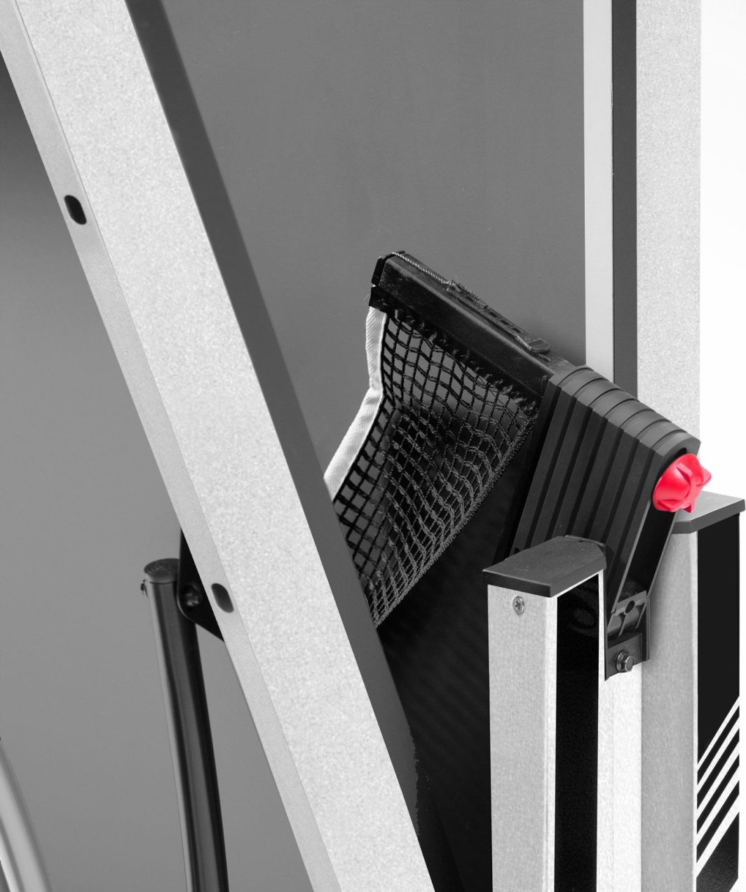ТЕНІСНИЙ СТІЛ CORNILLEAU COMPETITION 740 ITTF СІРИЙ Стіл Competition 740 ITTF — це справжнє поєднання інновацій.Ця безліч зручностей робить стіл унікальним – на думку експертів, він є найкращим серед професійних столів, зосередивши в собі всі ноу-хау бренду Cornilleau.25-міліметрова стільниця з покриттям SKILLTOP гарантує оптимальну швидкість і якість відскоків і винятково видовищну гру.Цей стіл наразі вважається найкращим продуктом на ринку та настійно рекомендований ITTF.Колеса з гальмами 4 великих колеса з 4 гальмами гарантують відмінну мобільність і стійкість столу, комфорт під час гри і безпеку при зберіганні столу.Надійна якість виготовлення Для виготовлення столу використовувалися найякісніші, міцні матеріали та компоненти.Прихована сітка При закритті столу сітка автоматично ховається між стільницями, що зменшує займаний простір і забезпечує безпеку.Регульована сітка Система подвійного регулювання гарантує, що сітка завжди ідеально регулюється – як за висотою, так і за натягом.Стіл адаптований для людей з обмеженими можливостями. Завдяки спеціальному дизайну стіл адаптований для гри гравців на інвалідних візках, сертифікований ITTF W і відповідає всім стандартам.Стійкість Великі широкі ніжки столу з вирівнювальними ніжками дозволяють регулювати висоту до ідеального рівня.Французька якість Продукт розроблений і виготовлений у Франції.