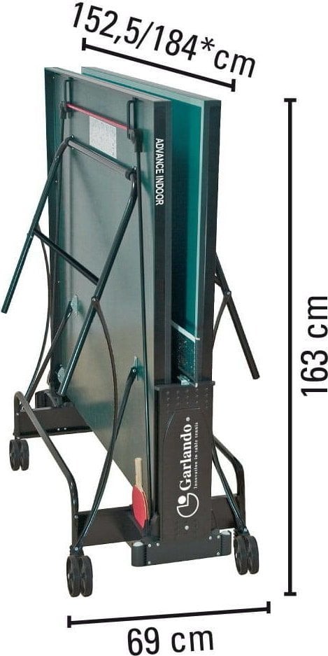 Стіл для настільного тенісу Cornilleau Advance Indoor Garlando – ідеально підходить для гри в приміщенні. Стіл для настільного тенісу Garlando Advance Indoor – відмінний вибір для любителів настільного тенісу, які шукають обладнання для використання в приміщенні.Завдяки міцній конструкції та сучасним технологіям стіл гарантує стабільність і комфорт під час гри, що робить його ідеальним як для новачків, так і для гравців середнього рівня.Ігрова поверхня з багатошарової дерев’яної дошки Стільниця виготовлена з високоякісної багатошарової дерев’яної дошки товщиною 19 мм, покритої меламіном.Завдяки цьому він забезпечує чудові умови для гри, а його олімпійські розміри 274 x 152,5 x 76 см роблять його професійним обладнанням.Стіл доступний в елегантному зеленому кольорі, що додає йому привабливості.Система складання Smart Manual System для зручного використання Garlando Advance Indoor оснащена інноваційною системою складання Smart Manual System, яка дозволяє легко та безпечно відкривати та закривати стільницю однією рукою.Стільниця опускається контрольовано, що підвищує безпеку використання та полегшує зберігання столу після гри.Міцна конструкція з металевим каркасом для стабільності. В основі столу лежить міцна алюмінієва рама з квадратним профілем 36 мм, покрита порошковою фарбою чорного кольору, що забезпечує високу стійкість.Круглі ніжки діаметром 25 мм і додаткові посилення з боків покращують комфорт гри і продовжують термін служби виробу.Вбудований тримач для ракетки та м’яча. До столу входить сітка довжиною 180 см і висотою 15,2 см, а також практичний тримач для ракеток і м’яча, який вбудований в каркас столу.Крім того, стіл дозволяє тренуватися соло, що дозволяє грати поодинці, що є ідеальним рішенням для людей, які хочуть вдосконалити свої навички.Мобільність завдяки чотирьом колесам з гумовим протектором Стіл Garlando Advance Indoor оснащений чотирма подвійними колесами з прогумованим протектором діаметром 125 мм, два з яких обертаються на 360 градусів.Це робить переміщення столу після гри надзвичайно легким і зручним.У складеному вигляді займає мало місця, що робить його практичним рішенням для будь-якого інтер’єру.Технічні характеристики тенісного столу Cornilleau Advance Indoor Garlando Бренд: Garlando Модель: Advance Indoor Dominant колір: зелений Вага столу: 75 кг Розміри (Д x Ш x В) у відкритому стані: 274 x 152,5 x 76 см Розміри (Д x Ш x В) у закритому стані: 152,5* / 184** x 66,5 x 187 см (* без сітки | ** із сіткою) Товщина стільниці: 19 мм Матеріал стільниці: багатошарова дерев’яна дошка з меламіновим покриттям Профіль рами: 36 мм, пофарбований чорним порошковим покриттям Профіль ніжки: круглий, діаметр 25 мм Відповідність стандартам: EN 14468-1 (стіл), EN 14468-2 (сітка) Призначення: для використання в приміщенні, ідеально підходить для гравців середнього рівня Збірка: потрібні двоє людей, займає приблизно від 30 до 90 хвилин. Замовте зараз, щоб насолодитися найкращою якістю гри!Ідеально підходить для ваших потреб – доступний сьогодні в Apricot!