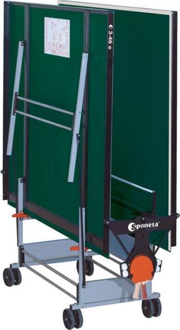 Стіл для настільного тенісу Sponeta S3-46e Sponeta – німецький бренд, який виробляє столи для настільного тенісу та аксесуари, продукція якого поставляється в 90 країн.Багаторічний досвід і відмінні відгуки гарантують задоволення від покупки.Продукцію Sponeta цінують як професіонали, так і любителі настільного тенісу.Специфікація моделі Стіл із лінійки Sponeta Sportline Outdoors Призначений для використання на відкритому повітрі Стійкий до погодних умов Європейський стандарт: EN-Norm 14468-1 Ідеально підходить для активного дозвілля Можливість складаного столу для тренувань з однією людиною Профіль рами 5 мм меламінової смоли Колір: зелений Обмежена ударостійкість Вологостійкий Каркас L-36 мм профіль, порошкове покриття Колір рами профілю: чорний (RAL) 9005) Автоматична рама (тип 4а) Квадратний профіль 25 х 25 мм, порошкове покриття, 4 колеса діаметром 125 мм, 2 поворотних колеса. Тримачі для ракеток і м’ячів з двох сторін.Колір рами: сірий (RAL 7040) Система замикання Простий автоматичний механізм замикання Розміри Розкладений: 274 x 152,5 x 76 см Для зберігання: 152,5 x 65 x 189 см Додаткова інформація Інструкція зі складання Додаткові аксесуари: чорна сітка “Pilot II EN стаціонарна” Вага Вага брутто: 58,5 кг Вага нетто: 53 кг