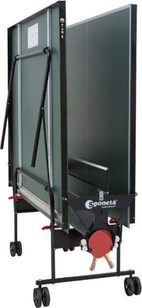 Стіл для настільного тенісу Sponeta S1-12e Технічні характеристики: для вуличного використання.Оцинкований каркас і пластикова дошка (меламін) товщиною 4 мм, яка має властивості класичної дерев’яної дошки, дозволяють постійно розміщувати стіл на відкритому повітрі (проте ми рекомендуємо залишати стіл на вулиці лише з весни до осені – сніг і лід можуть механічно пошкодити стіл) незалежно від поточних кліматичних умов.Сітчастий тримач стаціонарно кріпиться до столу.Стіл можна скласти без демонтажу сіткотримача з сіткою.Ходові колеса полегшують керування столом.Розміри столу в розкладеному стані 274 х 152,5 х 76 см, загальна висота в складеному вигляді для маніпуляцій становить 153 (184 см разом з лівими ручками на сітці) х 65 см х 189 см разом з висотою колеса.До столу входять сіткотримач, сітка, тримач для 2 ракеток і м’ячів.Вага столу 49 кг, з упаковкою 52 кг.В наявності ЗЕЛЕНИЙ колір.Комплектація: 1 стіл, 1 кронштейн, 1 сітка
