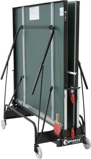Sponeta – німецький бренд, що виробляє столи та аксесуари для настільного тенісу, продукція якого поставляється в 90 країн світу.Багаторічний досвід і відмінні відгуки гарантують задоволення від покупки.Продукцію Sponeta цінують як професіонали, так і любителі настільного тенісу.Технічні характеристики моделі Стіл із лінійки Sponeta Hobbyline Outdoors Призначений для зовнішнього використання Стійкий до погодних умов Європейський стандарт: EN-Norm 14468-1 Можливість складаного столу для тренувань з однією людиною Профіль каркаса Плита з меламінової смоли 4 мм Колір: зелений Обмежена ударостійкість Вологостійкий Каркас Профіль L-36 мм, порошкове покриття Колір профілю каркасу: чорний (RAL 9005) Компактна рама (тип) 4б) Трубчастий профіль 25 мм, пофарбований порошковою фарбою, 4 колеса діаметром 125 мм, 2 поворотних колеса. Тримачі для ракеток і м’ячів з двох сторін.Колір рами: чорний (RAL 9005) Замок Поворотна система замикання з ручкою Розміри в розкладеному стані: 274 x 152,5 x 76 см Для зберігання: 152,5 x 69 x 163 см Додаткова інформація Стіл призначений для шкіл і клубів Інструкція зі складання Додаткові аксесуари: чорна сітка Вага Вага брутто: 53,5 кг Вага нетто: 48 кг