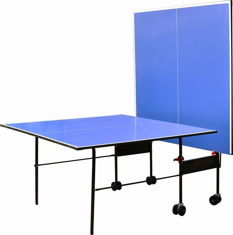 Професійний і міцний стіл для пінг-понгу, призначений для використання в тренажерних залах, спортивних клубах або вдома.Використано високоякісну ламіновану дошку, стільницю покрито синім антибліковим шаром.Незважаючи на свої розміри, стіл дуже легко зберігати завдяки простому та швидкому складанню.Стіл оснащений 18 мм стільницею з антибліковим покриттям.Після складання половини столу можлива одиночна гра.Конструкція зі сталі та профілів з порошковим покриттям дуже стійка.Має захисні кути, а весь верх відповідає вимогам європейського стандарту EN13986 щодо класу емісії формальдегіду.Призначення: внутрішні приміщення Конструкція: сталеві профілі Розміри: 274 х 152,5 х 76 см (Д х Ш х В) Вага: 65 кг Стільниця: ЛДСП товщиною 18 мм Ніжки: сталеві труби 8 коліс діаметром 90 мм – включаючи 4 поворотні 2 сталеві замки для ніжок, що залежать один від одного Додаткові захисні куточки Вага брутто: 72 кг
