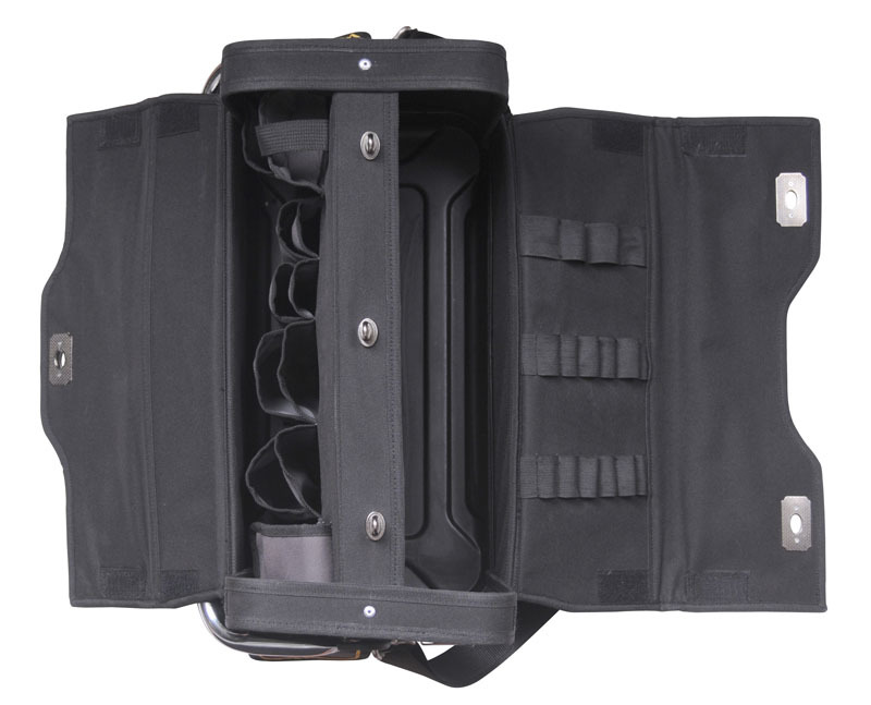 Сумка для сантехніків FATMAX – FMST1-70719 Можливість повністю або частково відкрити внутрішній простір Поділ камери на дві частини і вертикальні кишені дозволяють легко розташувати інструменти Зручні бічні кишені для дрібних інструментів і особистих речей Поліпропіленовий матеріал захищає інструменти від вологи і бруду М’який плечовий ремінь для перенесення важких вантажів Розміри: 52x28x31см