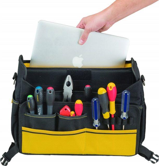 Сумка FatMAx для ноутбука та інструментів (FMST1-80149) водонепроникна 4 пластикові ніжки, які відкриваються спереду розміри: 32 x 42,5 x 15,5 см вага: 1,9 кг знімні ремінці ергономічна ручка