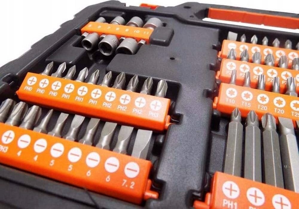 Свердло 14 град. с.д. 104 шт. – Повний набір свердел та насадок по металу та дереву. Набір свердел 14 Degrees East – ідеальне рішення як для любителів, так і для професіоналів.Цей універсальний набір, що складається зі 104 предметів, містить усе необхідне для ефективного свердління та загвинчування різноманітних матеріалів.Завдяки високій якості виготовлення свердла та насадки гарантують відмінну точність і довговічність, що робить їх незамінними в будь-якій майстерні.Практична коробка з системою Easy Grip Набір поставляється в функціональній коробці, призначеній для зручного доступу до аксесуарів.Система Easy Grip дозволяє швидко і зручно знімати і складати свердла і насадки, що значно полегшує роботу і організацію в майстерні.Набір аксесуарів для дрилі – все необхідне. У набір входять різноманітні свердла та насадки, які задовольнять потреби кожного користувача.Пропоновані позиції включають: Свердла по дереву діаметром від 3 мм до 8 мм Титанові свердла по металу діаметром від 1,5 мм до 8 мм Свердла Widia по бетону діаметром від 3 мм до 10 мм PH, PZ, TORX, шестигранні та квадратні насадки Насадки діаметром від 5 мм до 13 мм Титанові свердла по металу – різні діаметри для кожного проекту У набір входить 10 шт. титанові свердла по металу різного діаметру від 1,5 мм до 8 мм.Завдяки використанню титану ці свердла характеризуються підвищеною зносостійкістю та більшим терміном служби, що робить їх ідеальними для інтенсивної експлуатації.Свердла по бетону та дереву – універсальність в одному наборі. У набір також входять свердла по дереву та свердла по бетону Widia, що робить його надзвичайно універсальним інструментом.Незалежно від того, працюєте ви з деревом, металом або бетоном, цей набір задовольнить усі ваші потреби.Магнітний тримач і торцеві наконечники – зручність і ефективність У комплект входить магнітний тримач для біт 1/4″, що забезпечує зручність роботи і швидку заміну наконечників. Крім того, торцеві наконечники різного діаметру дозволяють легко адаптуватися до різних завдань, що підвищує ефективність роботи. Технічні характеристики набору Свердла 14 Degrees East 104 шт. Кількість елементів в наборі: 104 Бренд: Black&Decker Артикул виробника: BLACK&DECKER A7230 Свердла по дереву: 11 шт. 2,5, 3, 3,5, 4, 4,5, 5, 6, 8 мм) Свердла по бетону Widia: 5 шт. (діаметри: 3, 5, 6, 8, 10 мм) Свердла PH: Ph0 (3 шт.), Ph1 (3 шт.), Ph2 (3 шт.), Ph3 (4 шт.) Свердла PZ: Pz0 (4 шт.), Pz1 (3 шт.), Pz2 (4 шт.), Pz3 (4 шт.) Плоскі наконечники: SL4 (2 шт.), SL5 (2 шт.), SL6 (2 шт.), SL7 (2 шт.) Насадки TORX: T10 (2 шт.), T15 (1 шт.), T20 (2 шт.), T25 (2 шт.), T27 (2 шт.), T30 (2 шт.). шт.) Шестигранні насадки: H4 (2 шт.), H5 (2 шт.), H6 (3 шт.) Квадратні насадки: S1, S2, S3 Торцеві насадки: діаметри: 5, 6, 7, 8, 9, 10, 11, 12, 13 мм Магнітний тримач насадок: 1/4″ Насадка для зняття фаски отворів: так Замовте зараз, щоб насолодитися найкращою продуктивністю та універсальність у вашій майстерні!Це ідеальний вибір для тих, хто цінує якість і функціональність – доступний сьогодні в Morele!